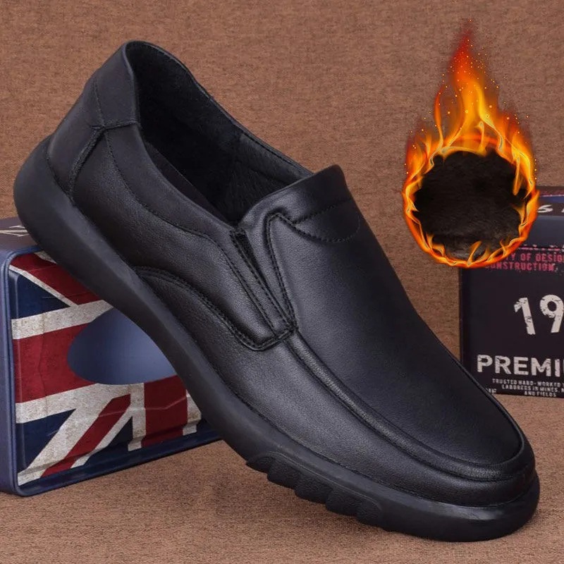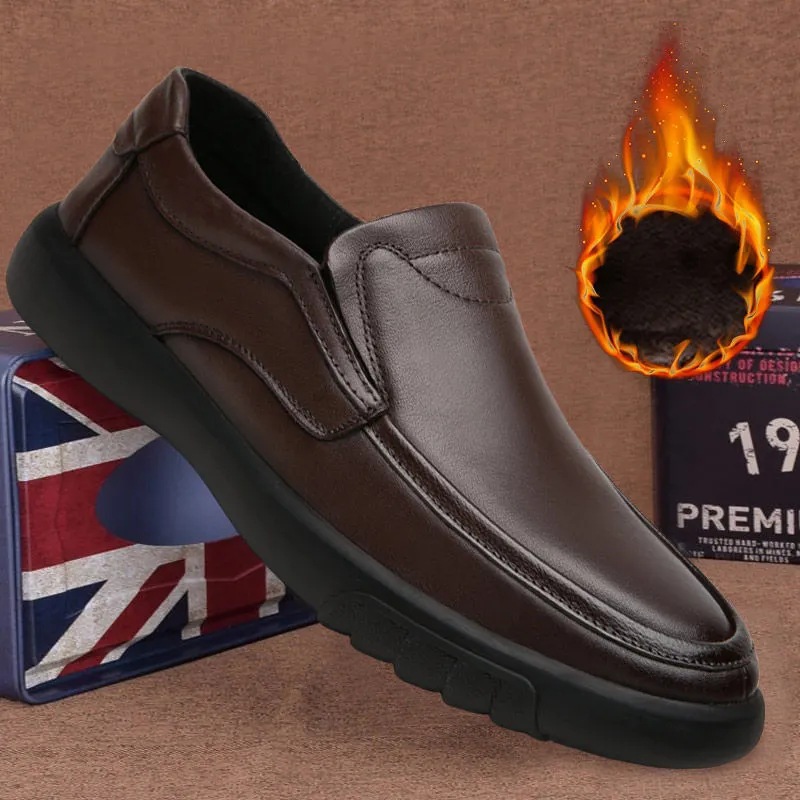 가죽 신발 남성 정품 가죽 미끄럼 방지 캐주얼 신발 내마모성 부드러운 표면 슬립 온 비즈니스 가죽 신발 중년 아빠 신발 대형 남성 신발