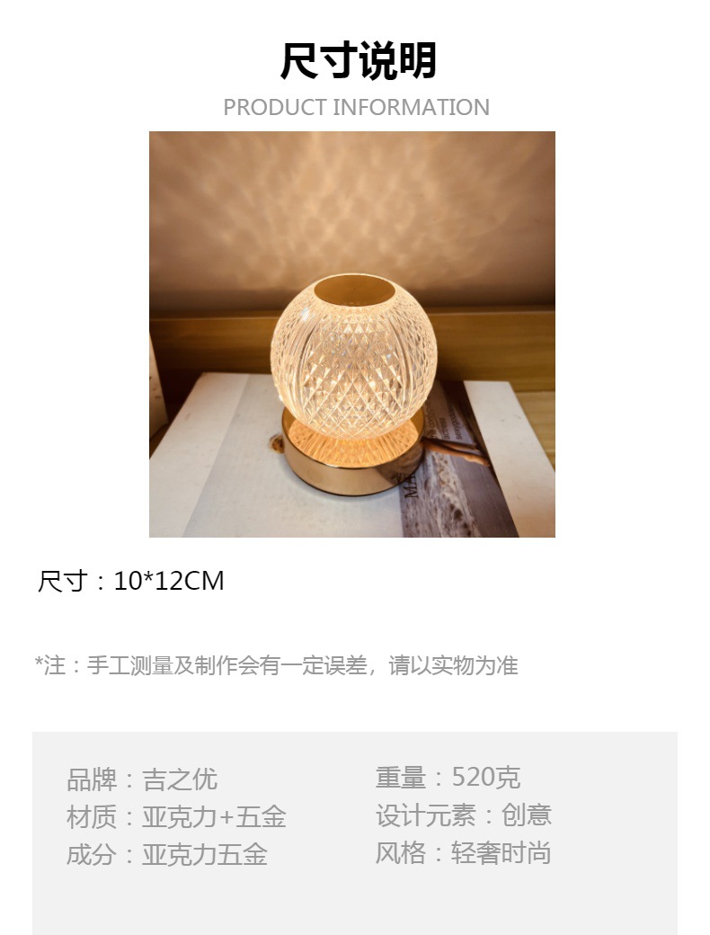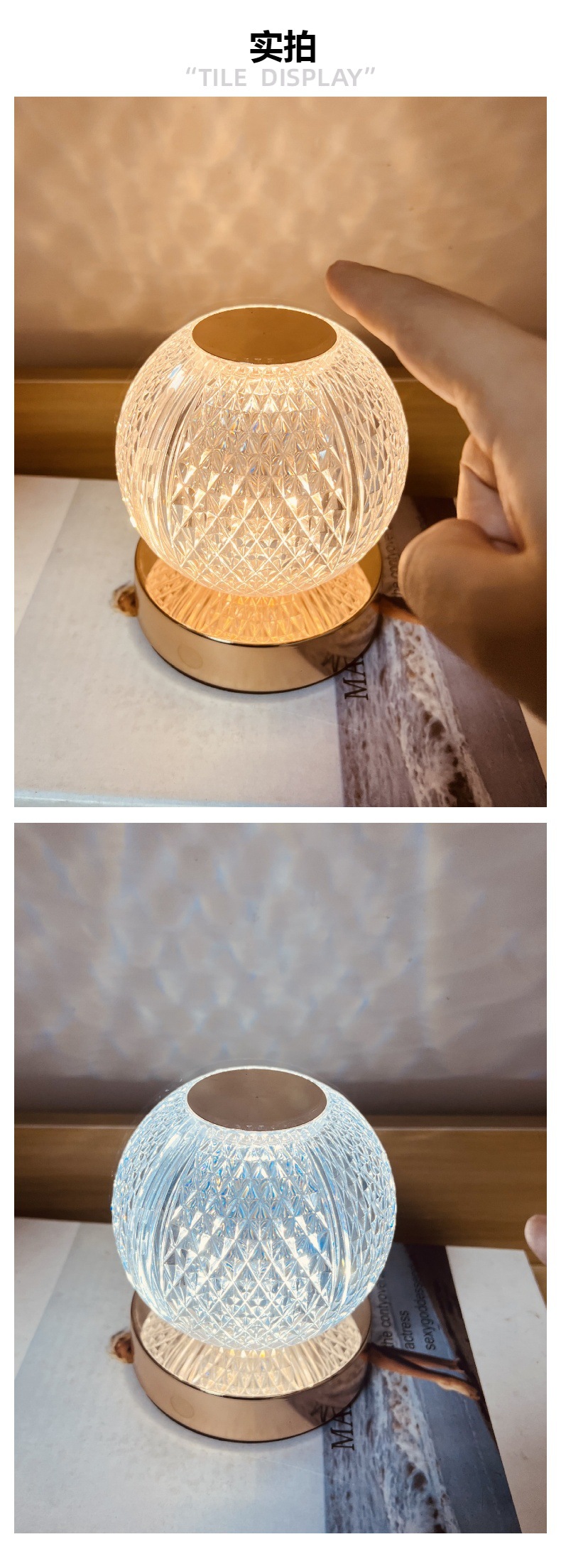 크리스탈 구면 밤 진주 테이블 램프 북유럽 간단한 아크릴 야간 램프 침실 바 USB 대기 램프