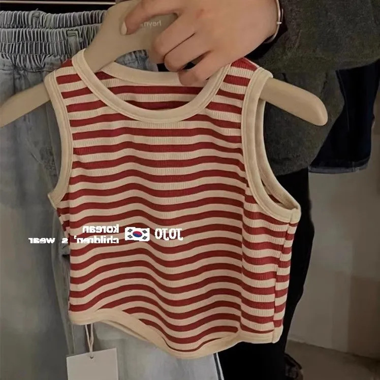 소녀 한국식 패션 슬림핏 짧은 민소매 편안한 쿨 조끼 어린이 빈티지 스트랩 탑