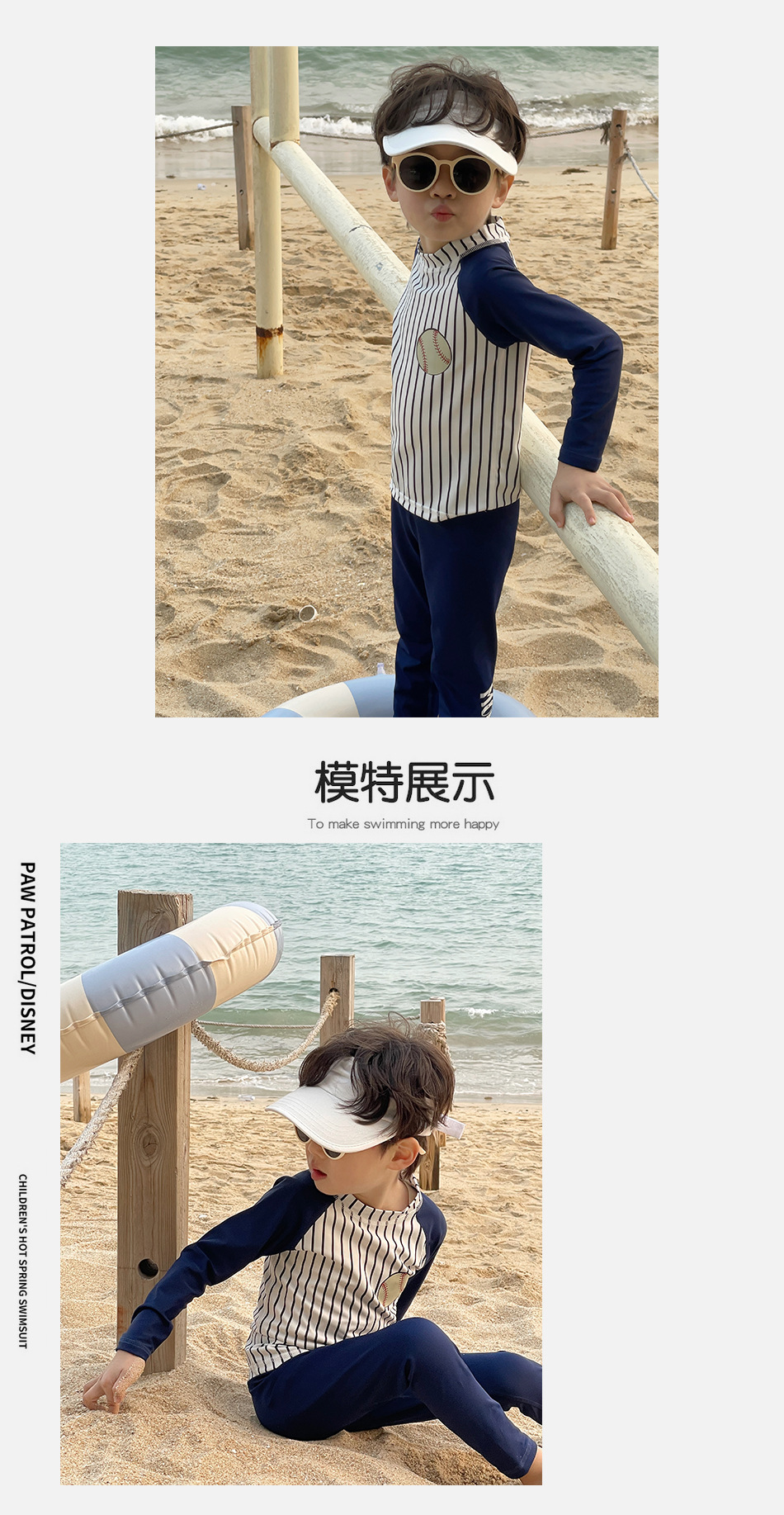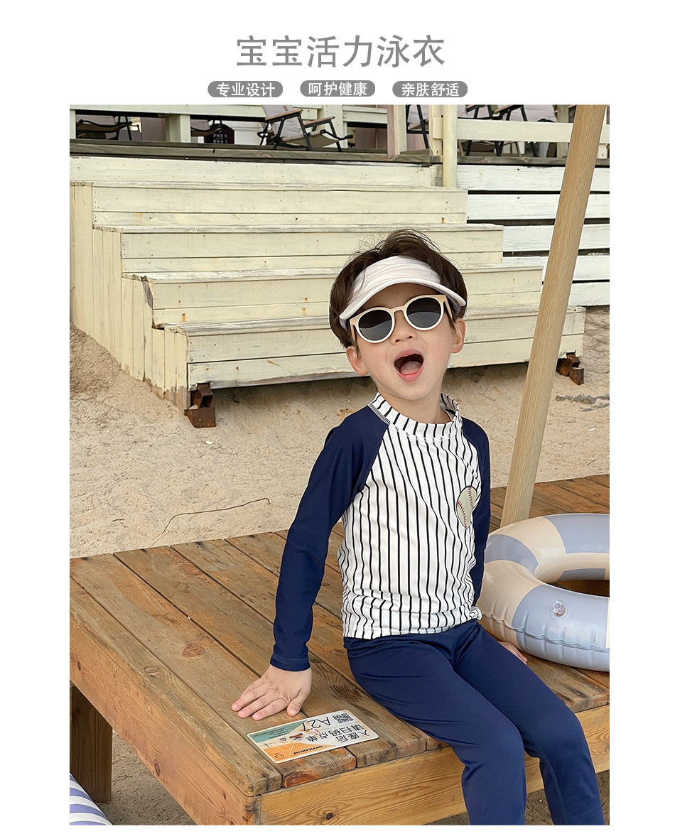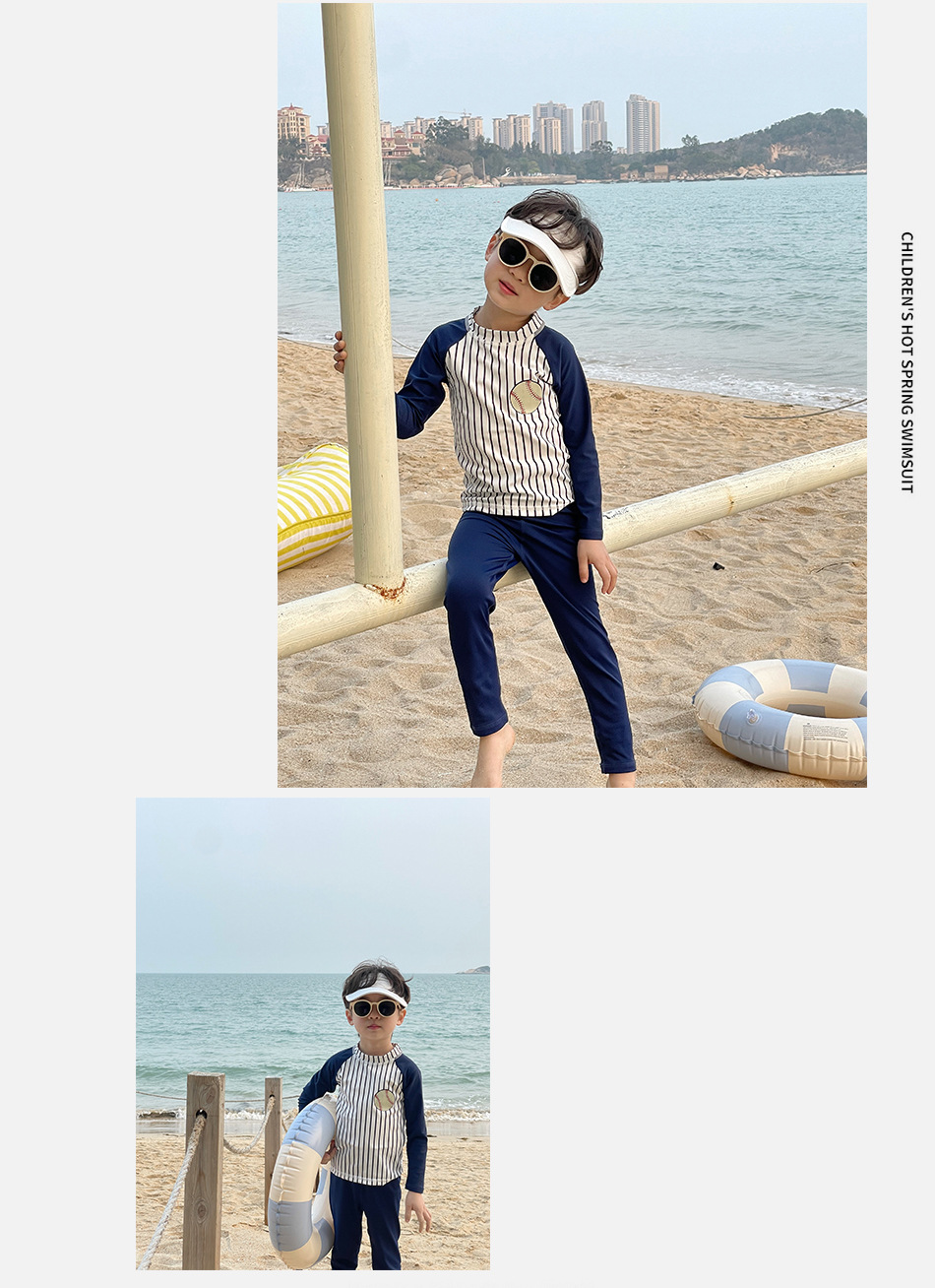 2024 새로운 한국 어린이 수영복 소년 소녀 분할 긴 소매 바지 태양 방지 빠른 건조 온천 수영복 세트