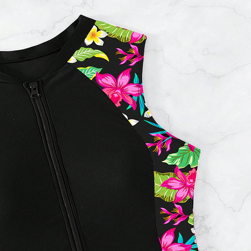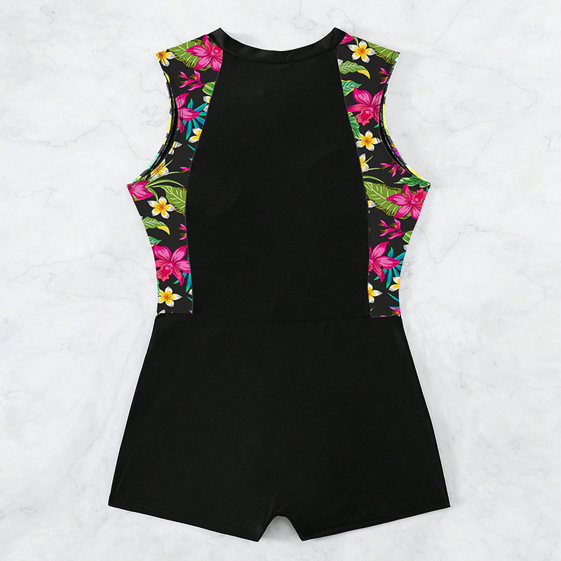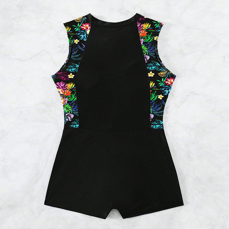 2024년 신상품 알리익스프레스 프린트 지퍼 보수적인 원피스 수영복 여성용 플랫 코너 배 가리기 비키니 수영복 다이빙복