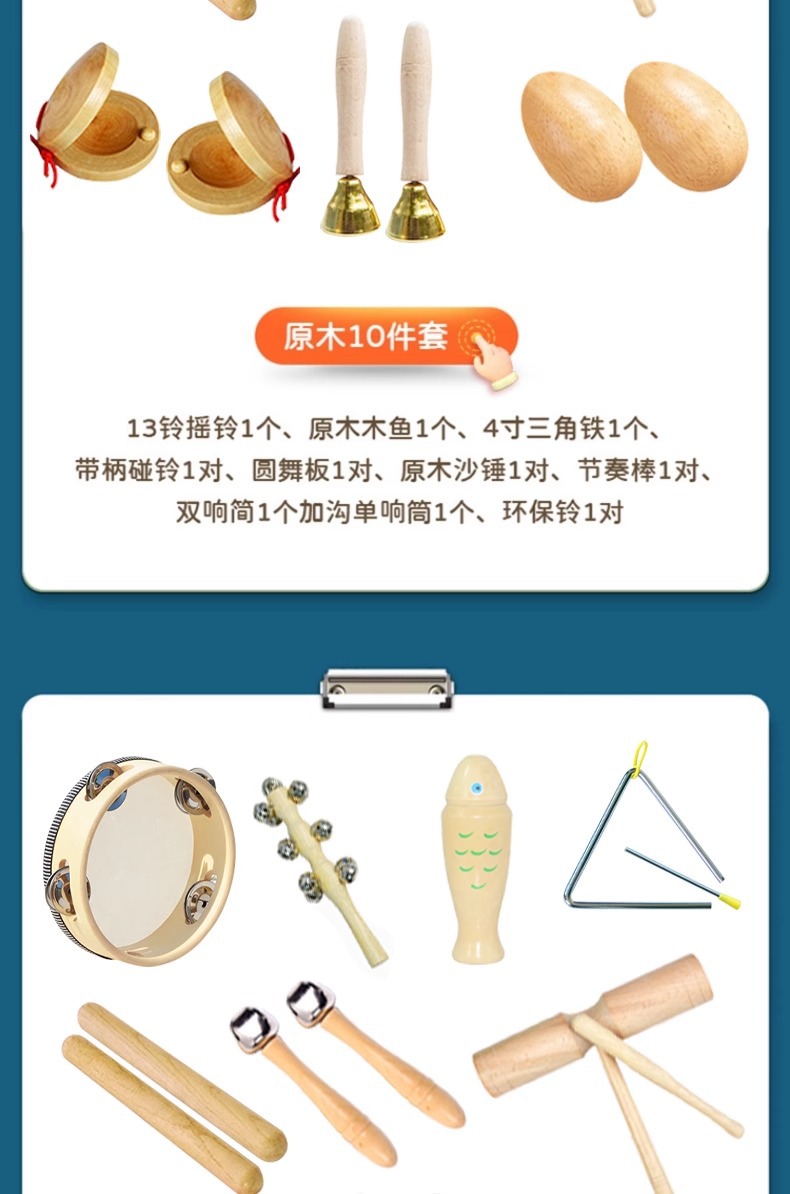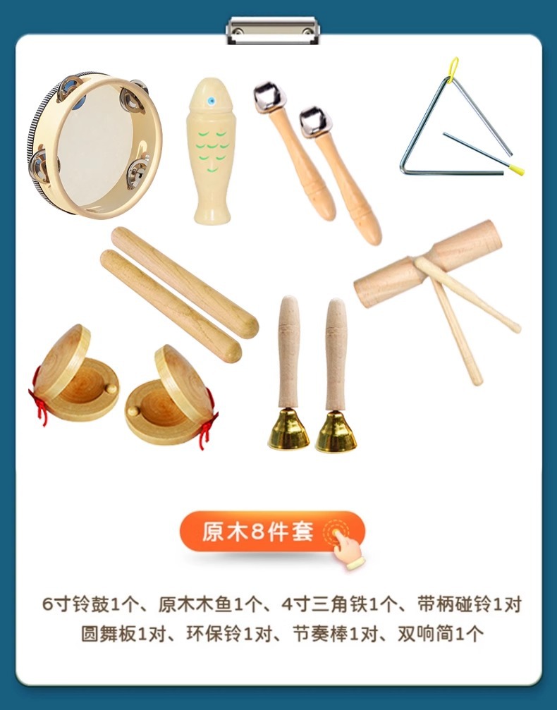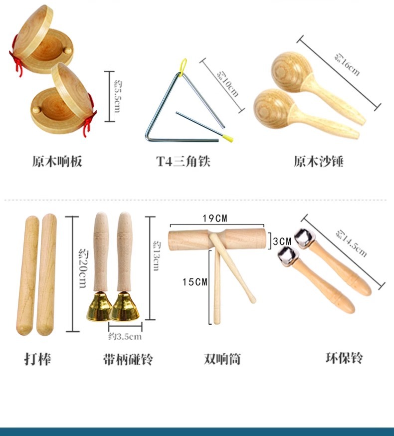 유치원 Orff 타악기 삼각형 링 보드 어린이 더블 링 리듬 스틱 벨 해머 드럼 음악스토어 가기