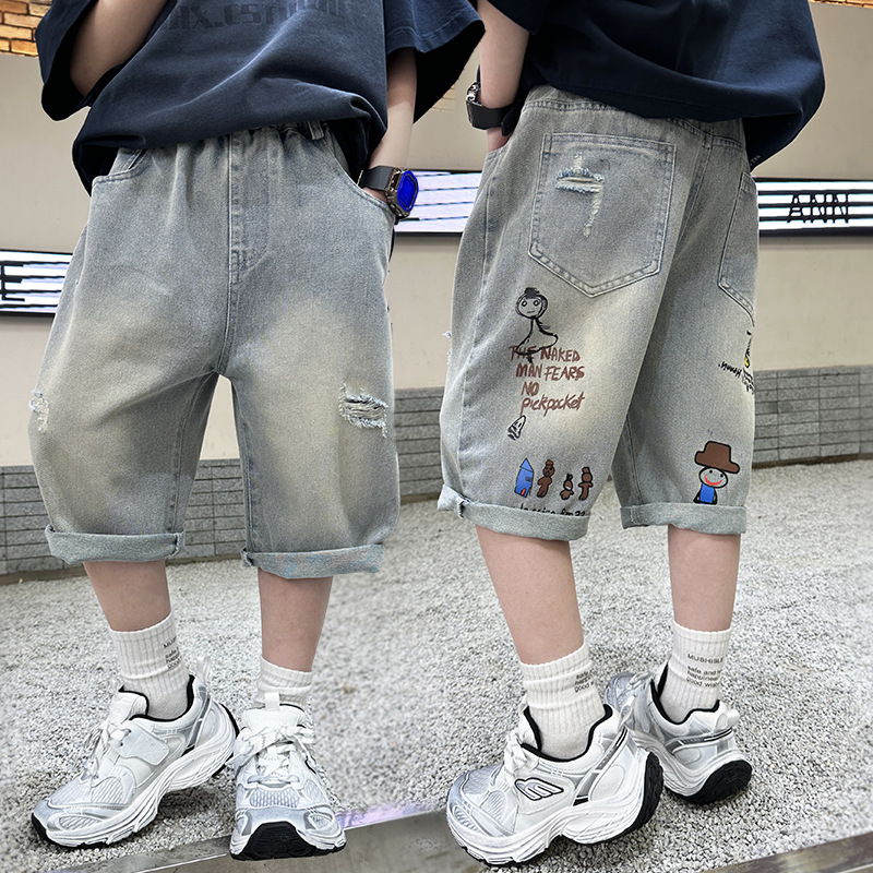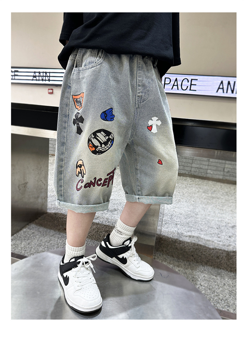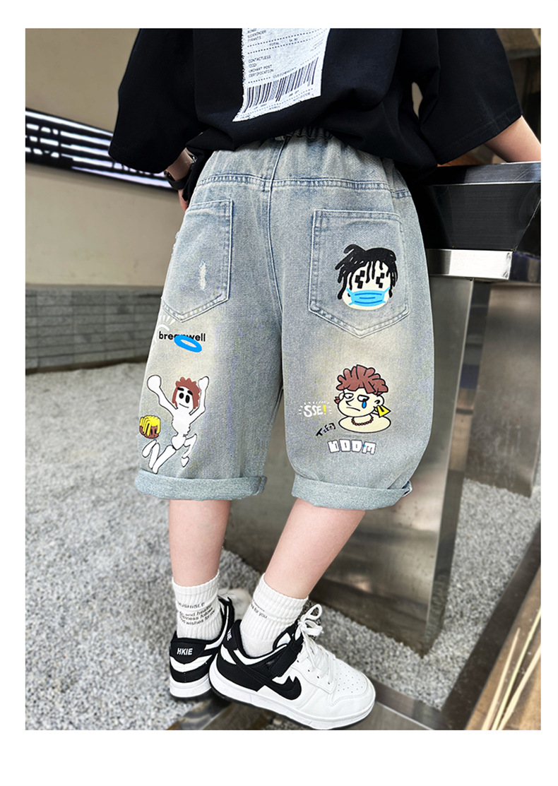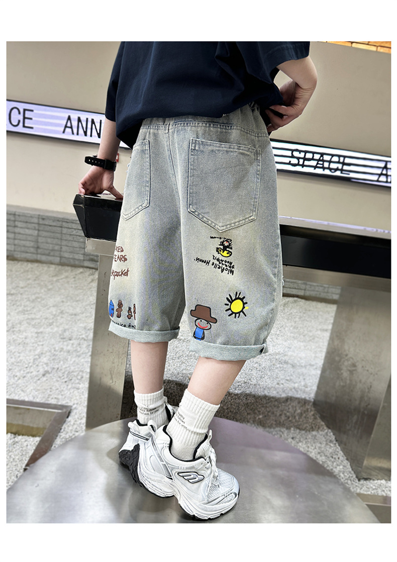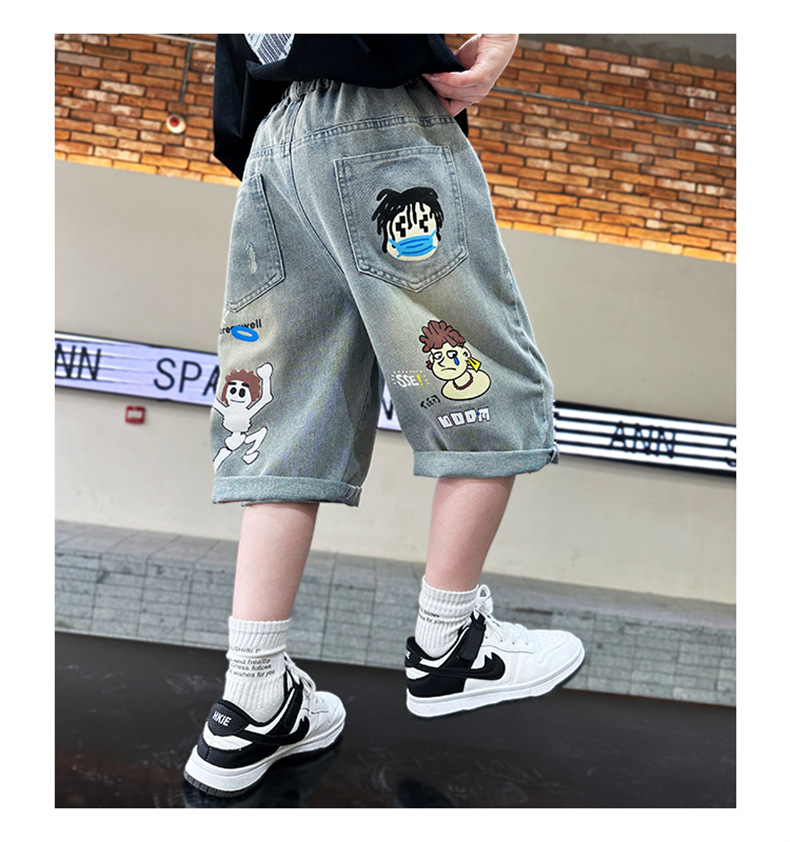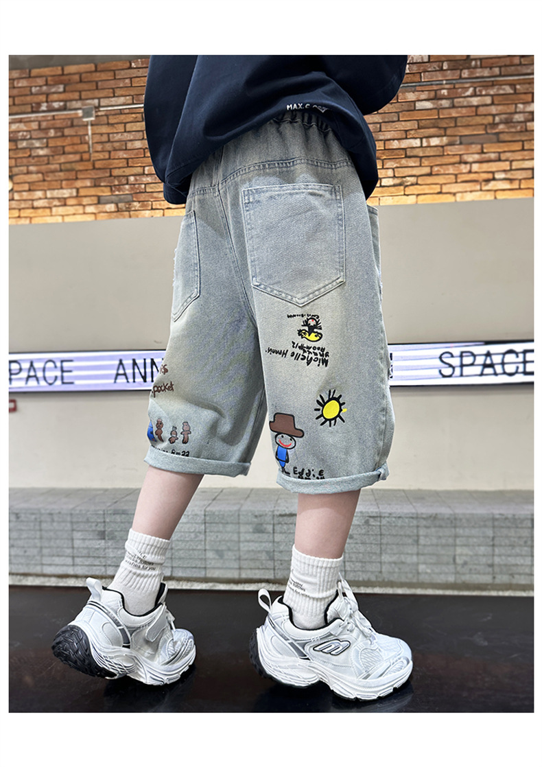 남아용 데님 반바지 여름 2025 신상 여름옷 반바지 중대형 어린이 남아용 바지 여름 스타일 5부 바지 트렌디스토어 가기