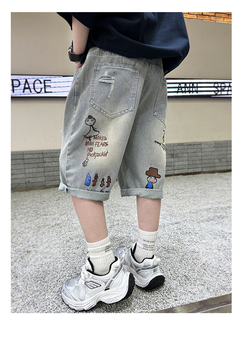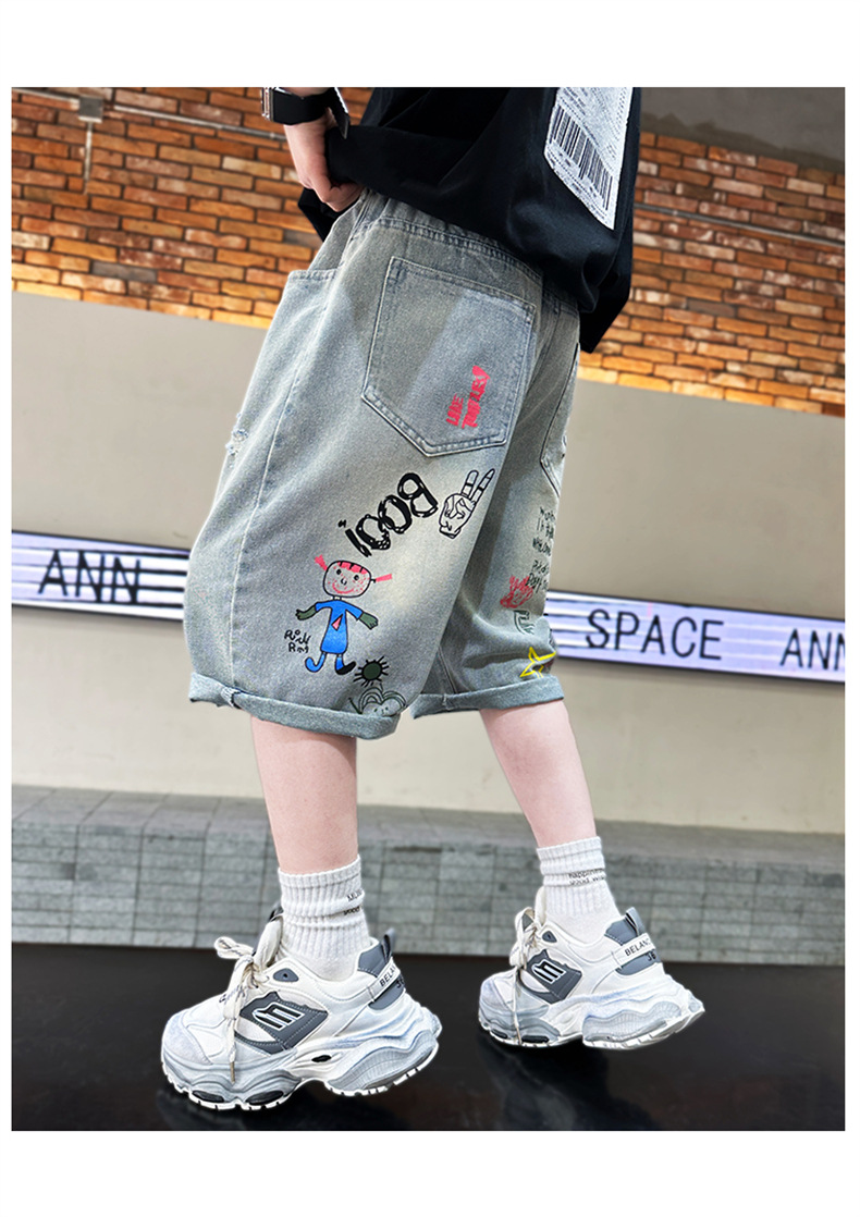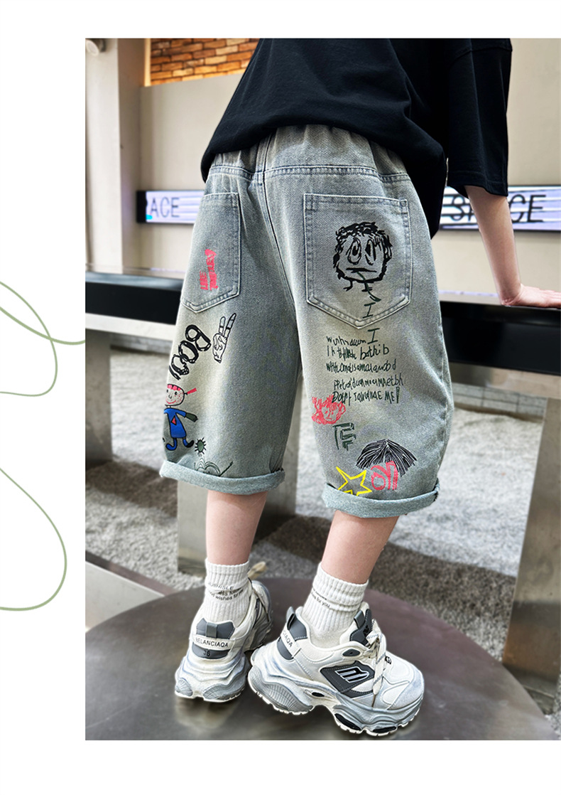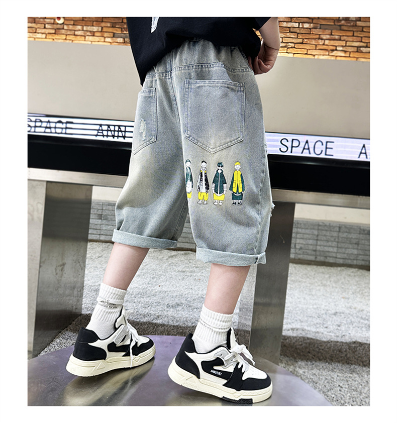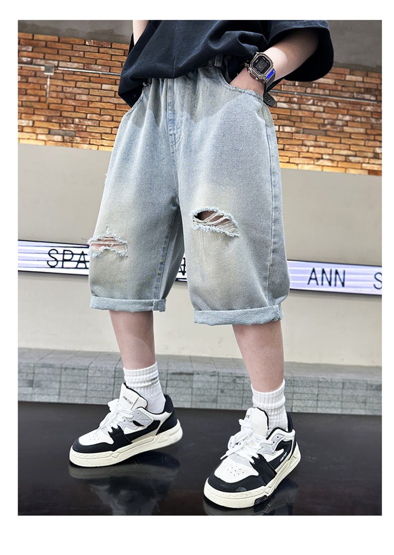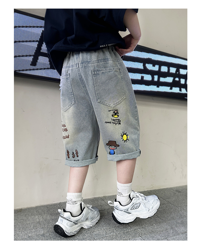 남아용 데님 반바지 여름 2025 신상 여름옷 반바지 중대형 어린이 남아용 바지 여름 스타일 5부 바지 트렌디스토어 가기
