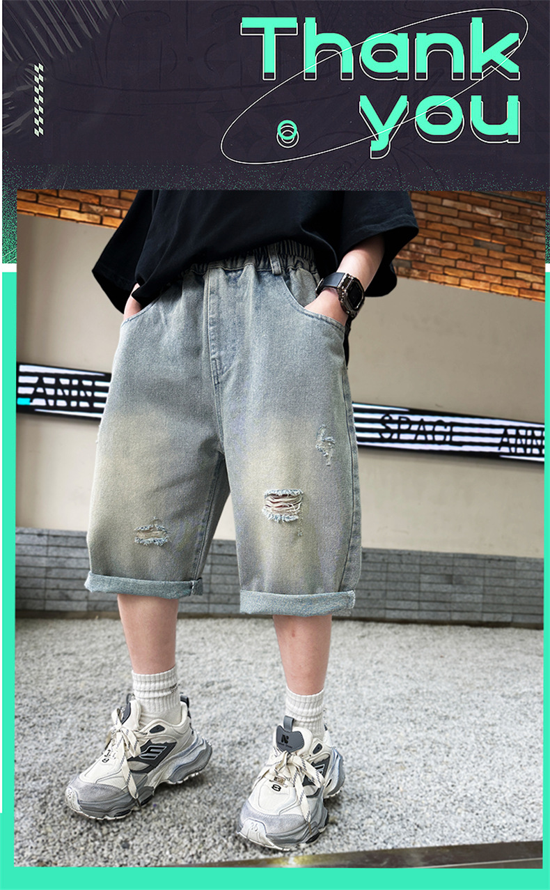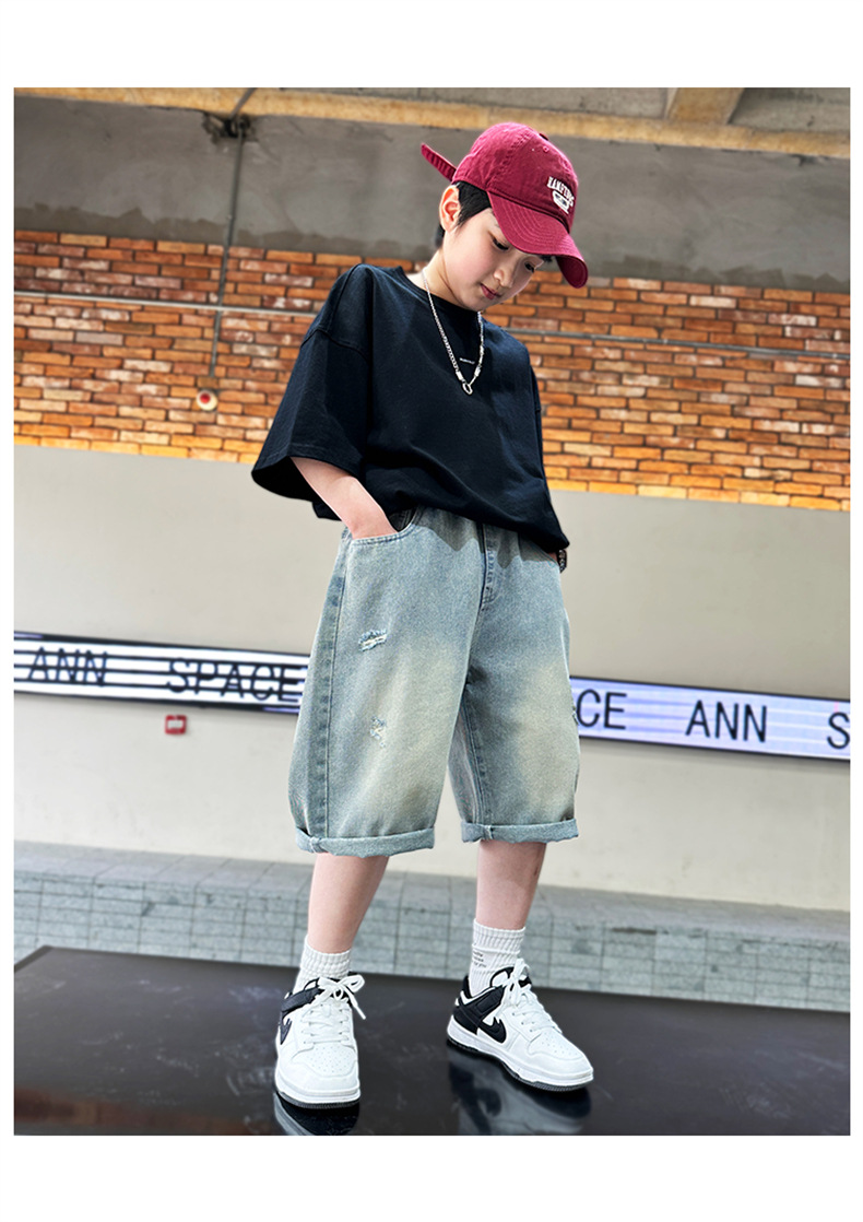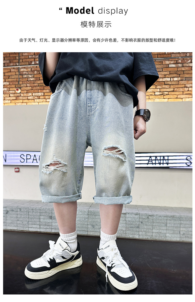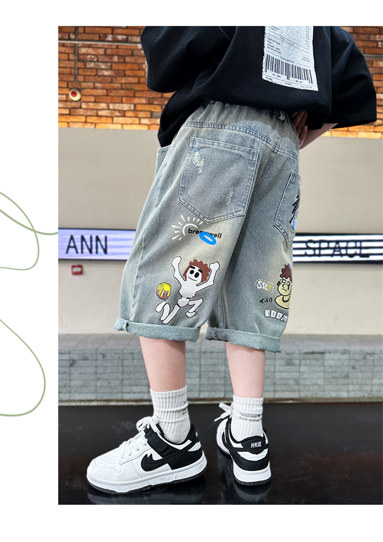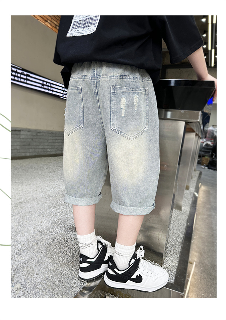 남아용 데님 반바지 여름 2025 신상 여름옷 반바지 중대형 어린이 남아용 바지 여름 스타일 5부 바지 트렌디스토어 가기