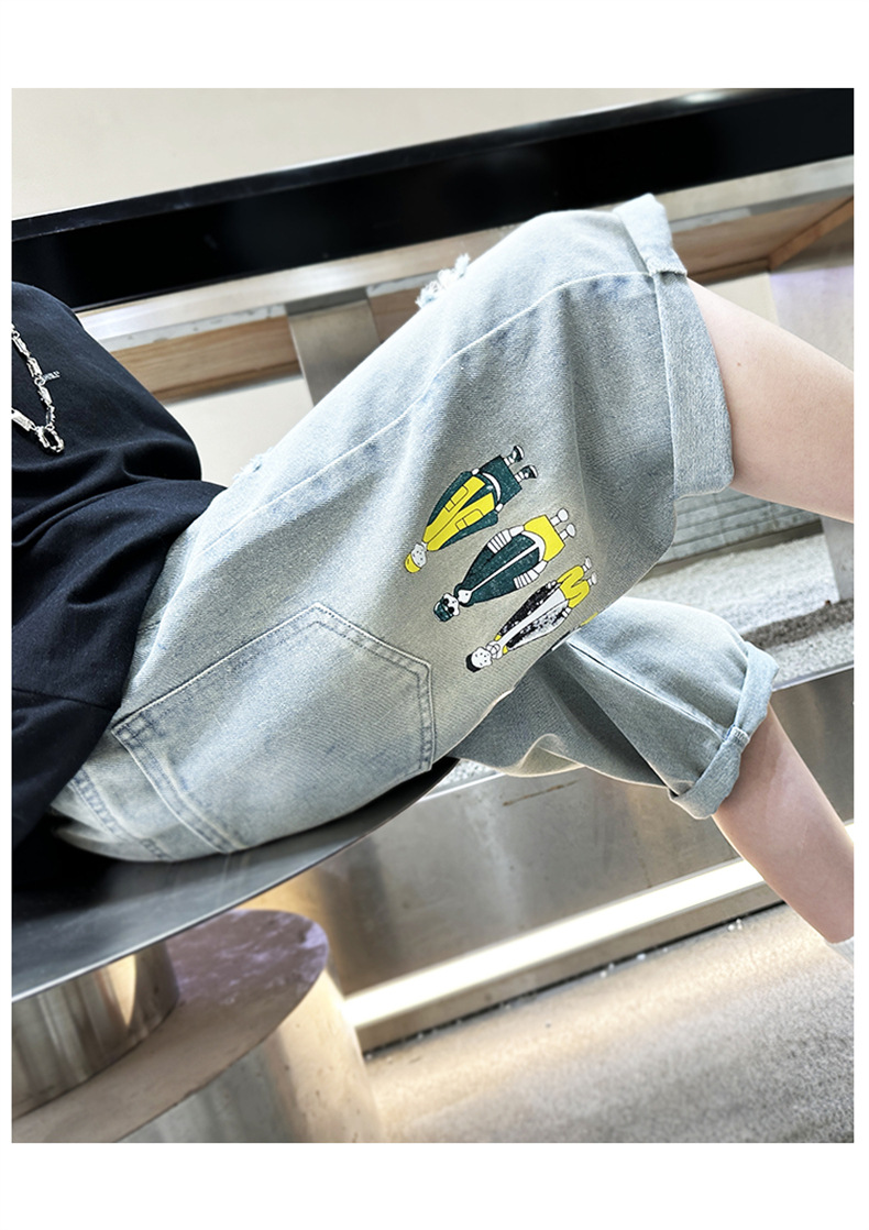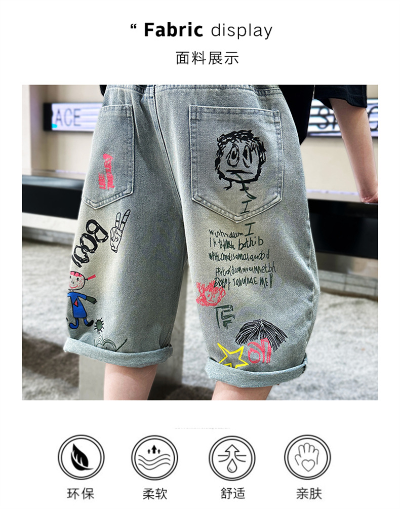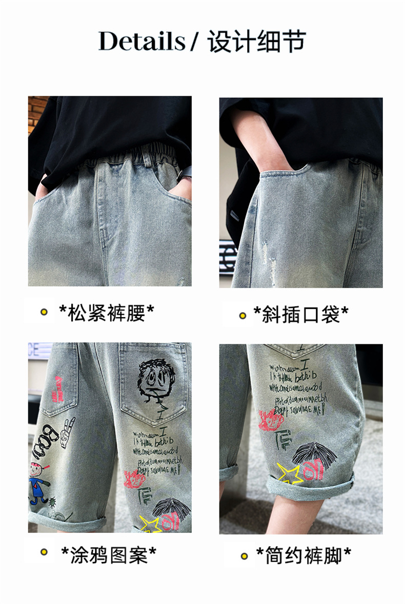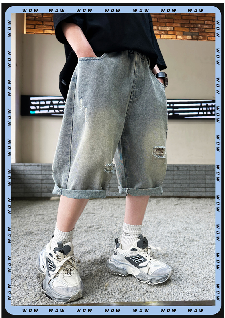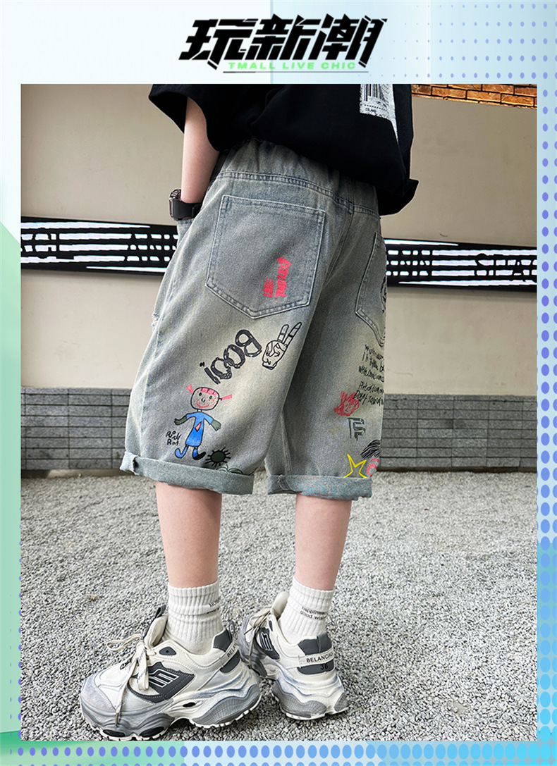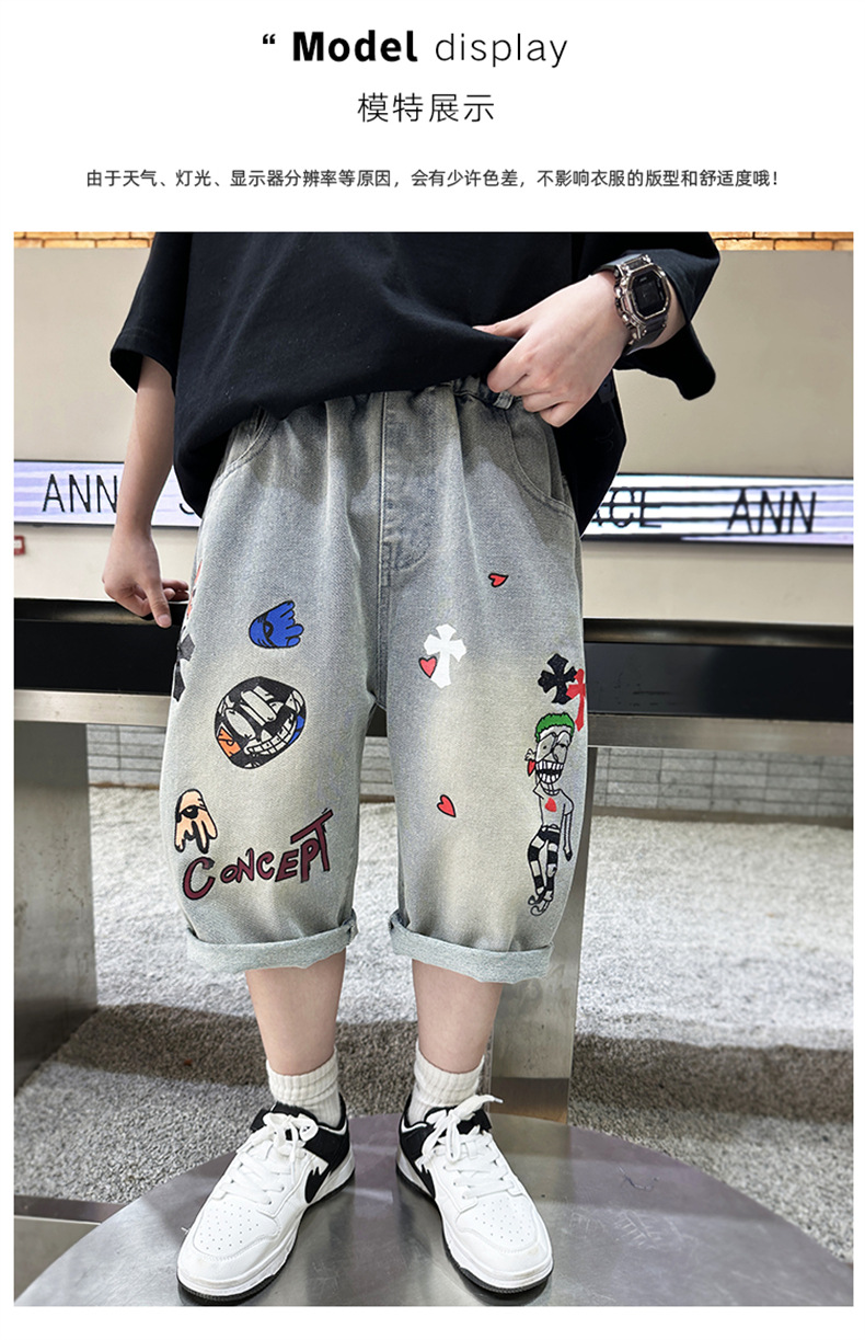 남아용 데님 반바지 여름 2025 신상 여름옷 반바지 중대형 어린이 남아용 바지 여름 스타일 5부 바지 트렌디스토어 가기
