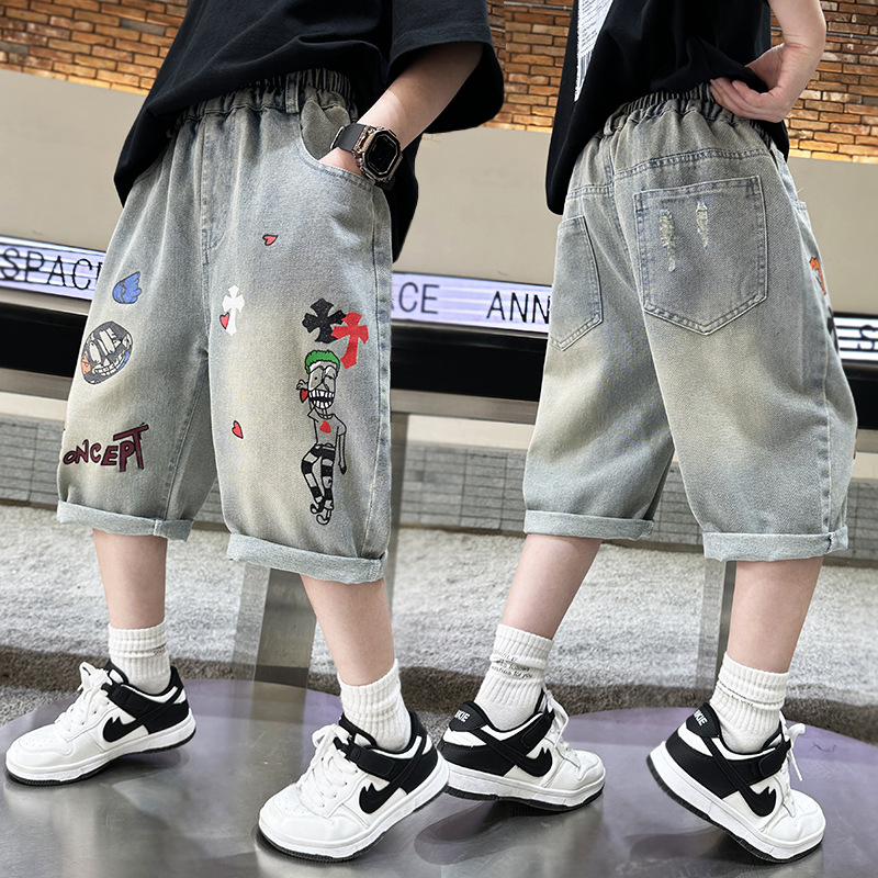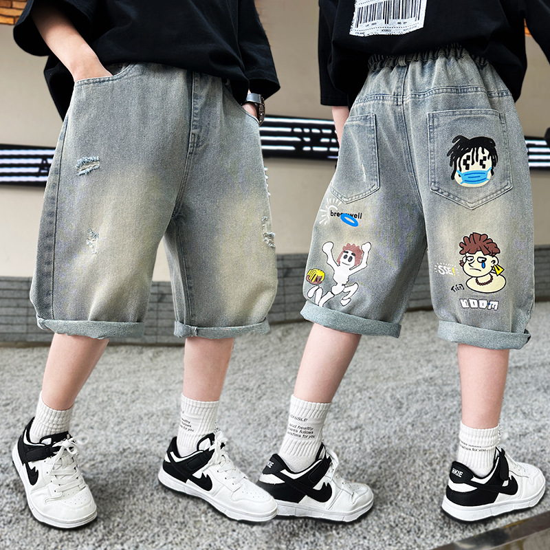 남아용 데님 반바지 여름 2025 신상 여름옷 반바지 중대형 어린이 남아용 바지 여름 스타일 5부 바지 트렌디