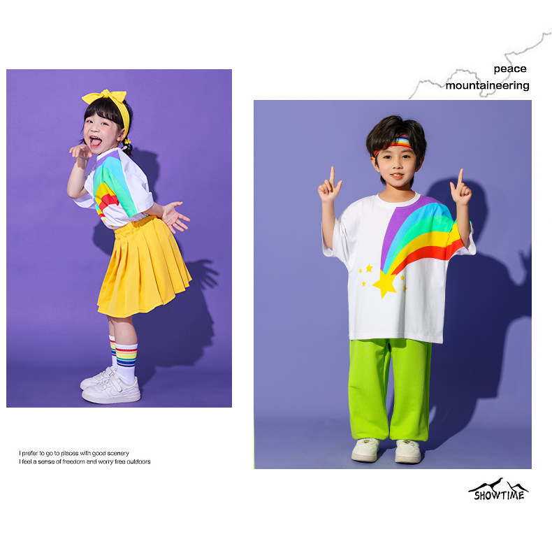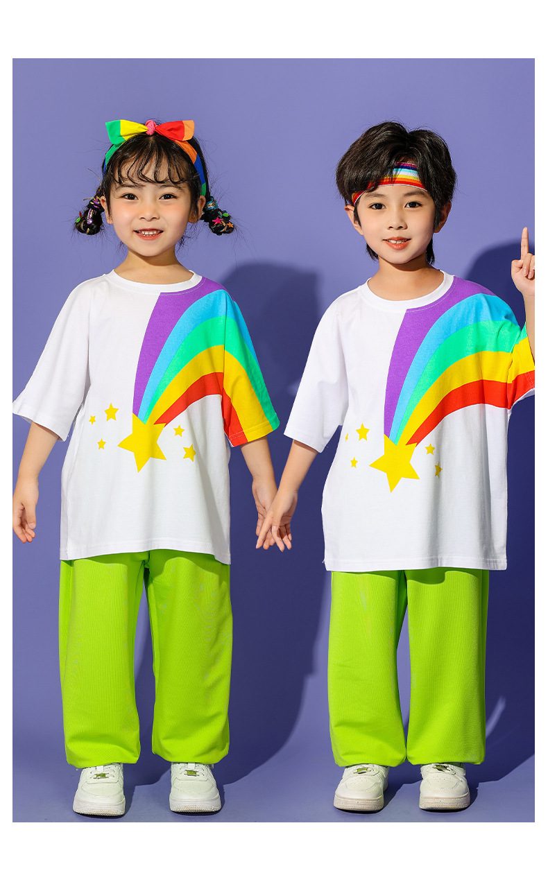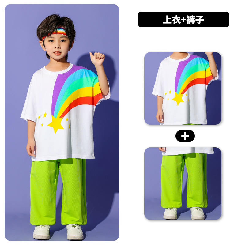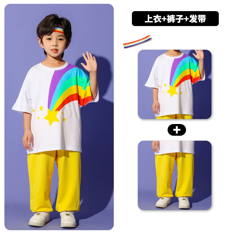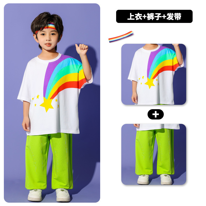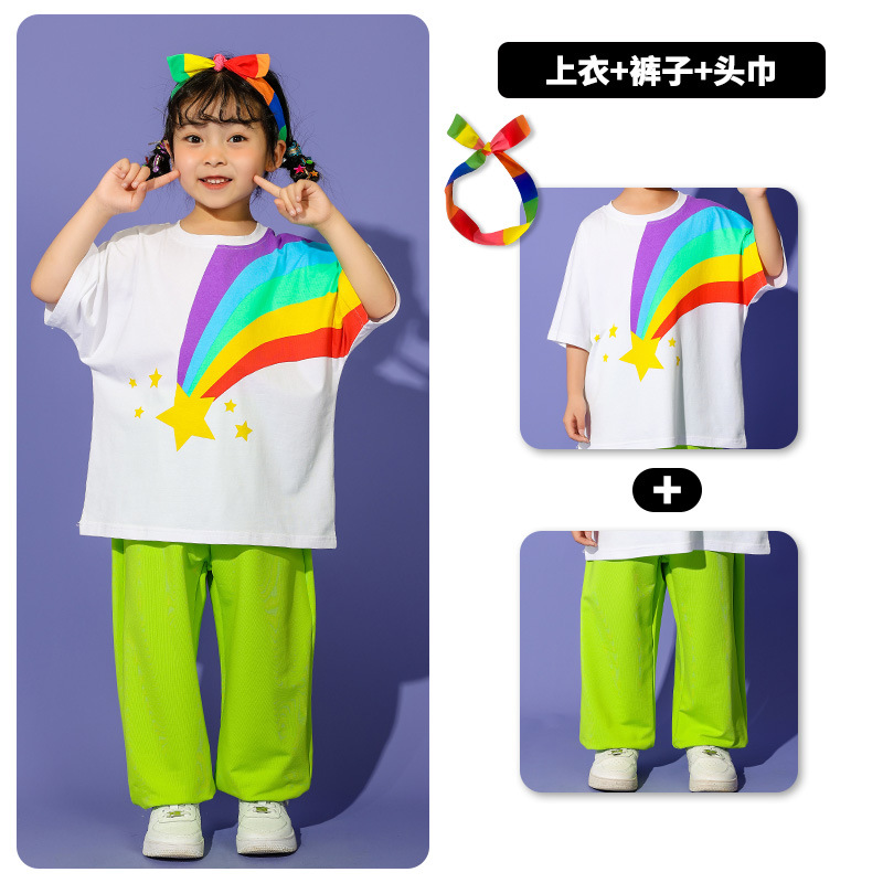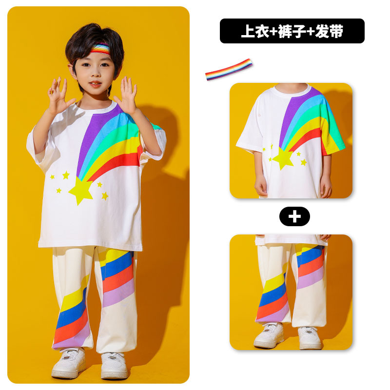 • 세트 [568D 무지개 짧은 소매 500D 무지개 바지] 무지개 머리 밴드