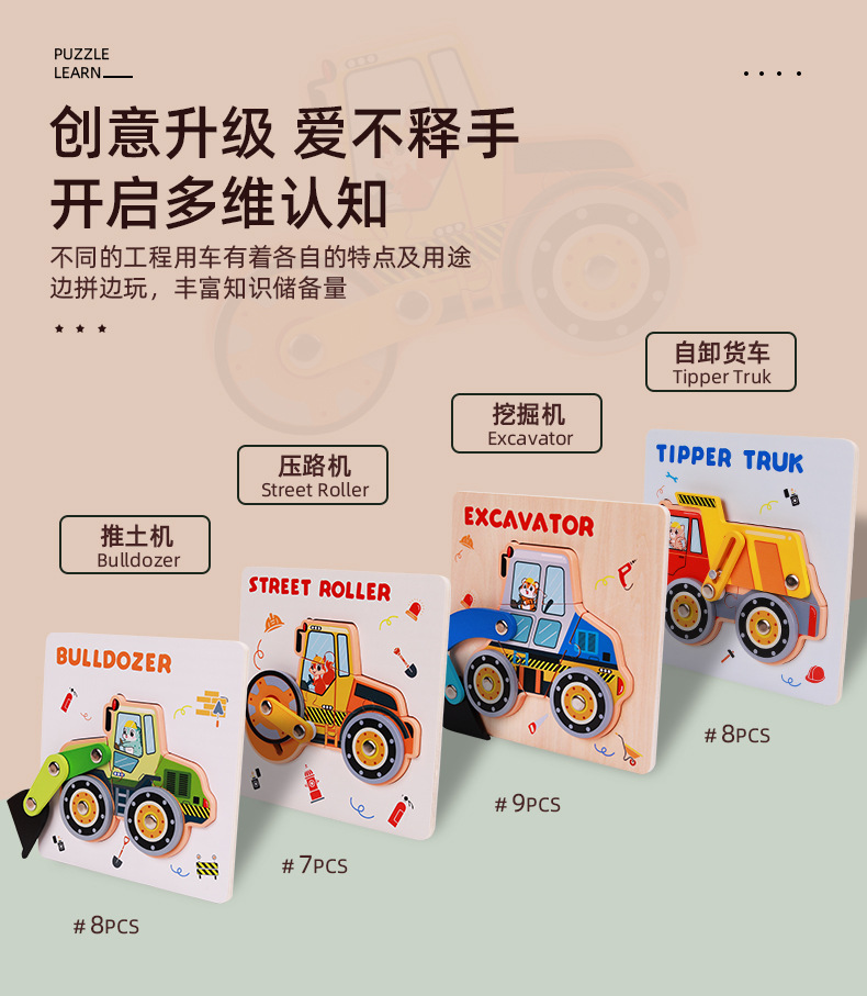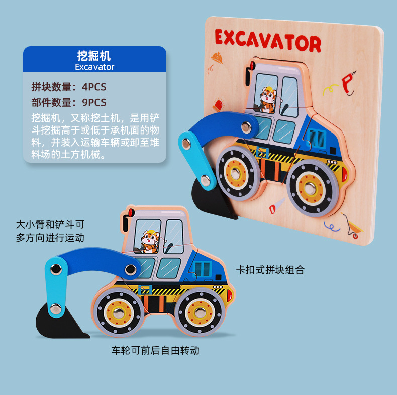 새로운 어린이용 나무 가동 관절 입체 퍼즐 3D 조기 교육 퍼즐 어린이 교육용 블록 장난감 3-6세