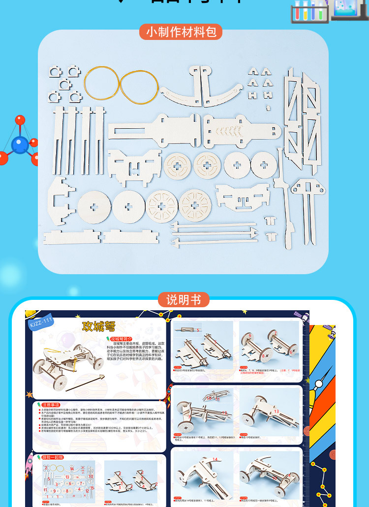 포위 된 석궁 트럭 기술 작은 생산 초등학교 과학 실험 교과서 어린이 기계 가르치는 장난감 재료 패키지 도매