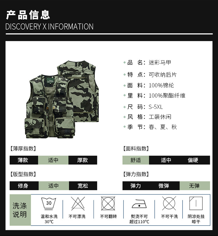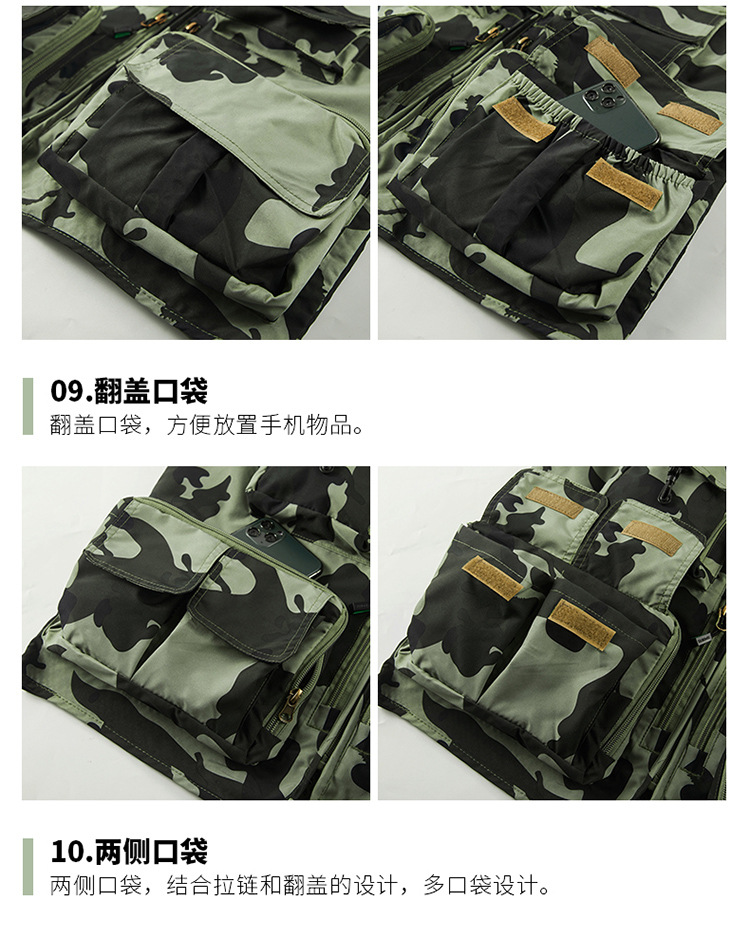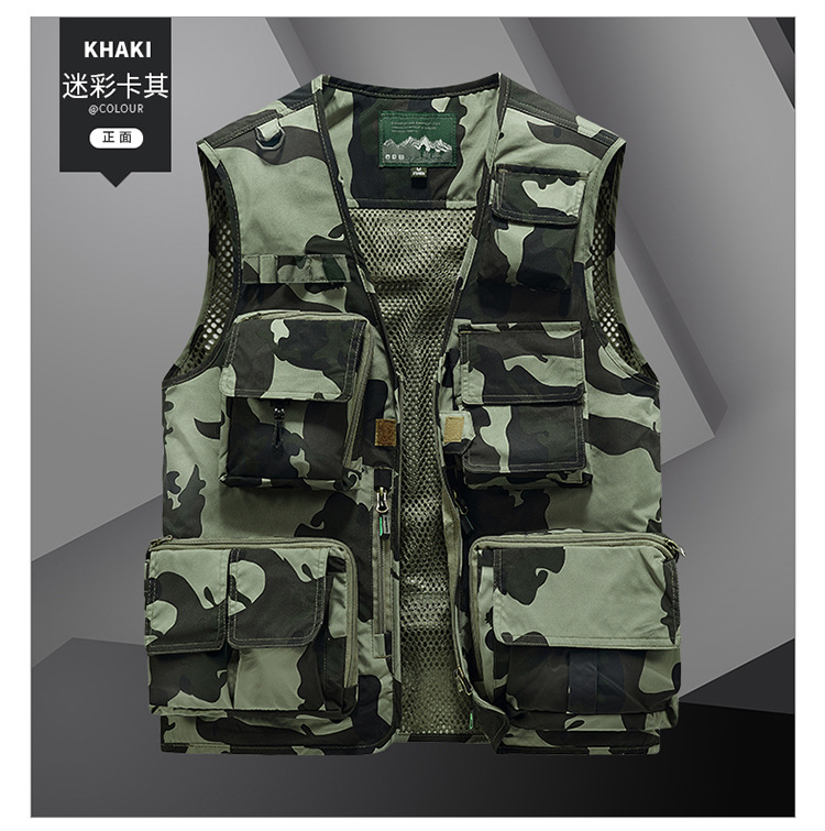 봄과 가을 새로운 위장 멀티 포켓 남성 조끼 얇은 유행 통기성 야외 등산 조끼 재킷