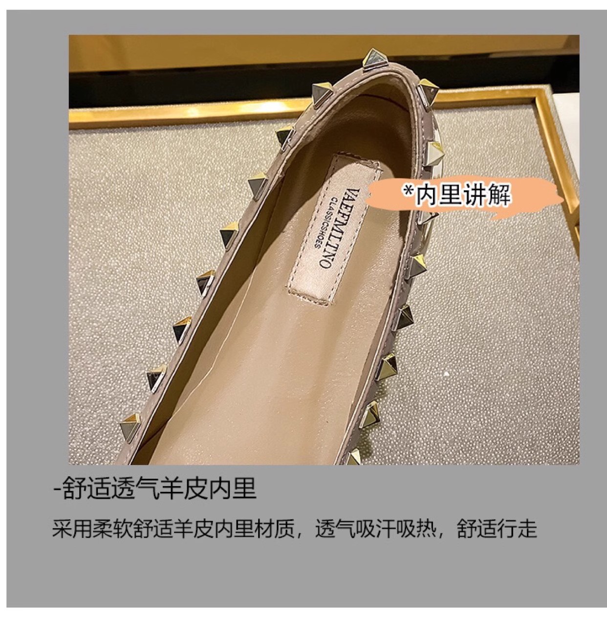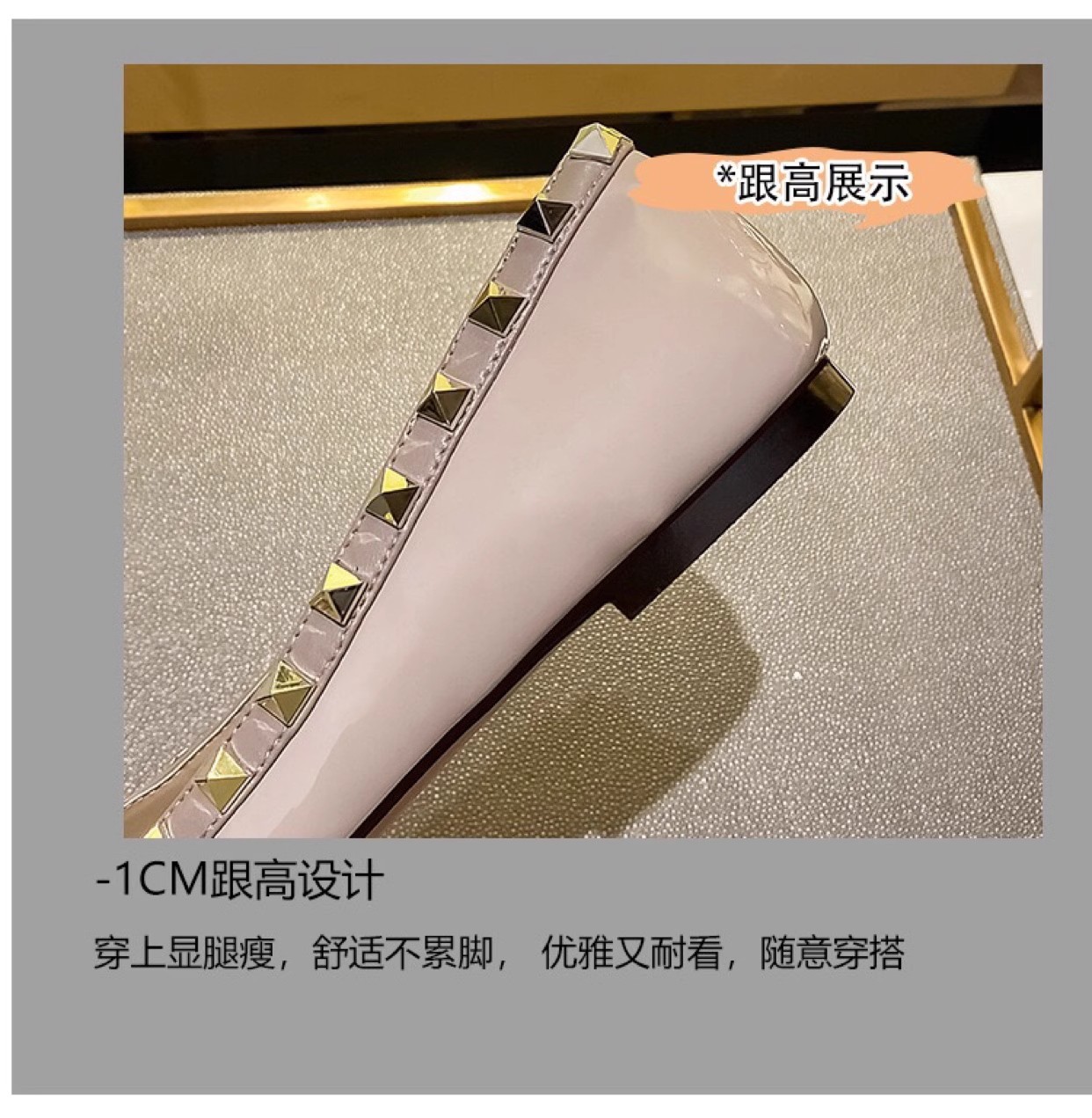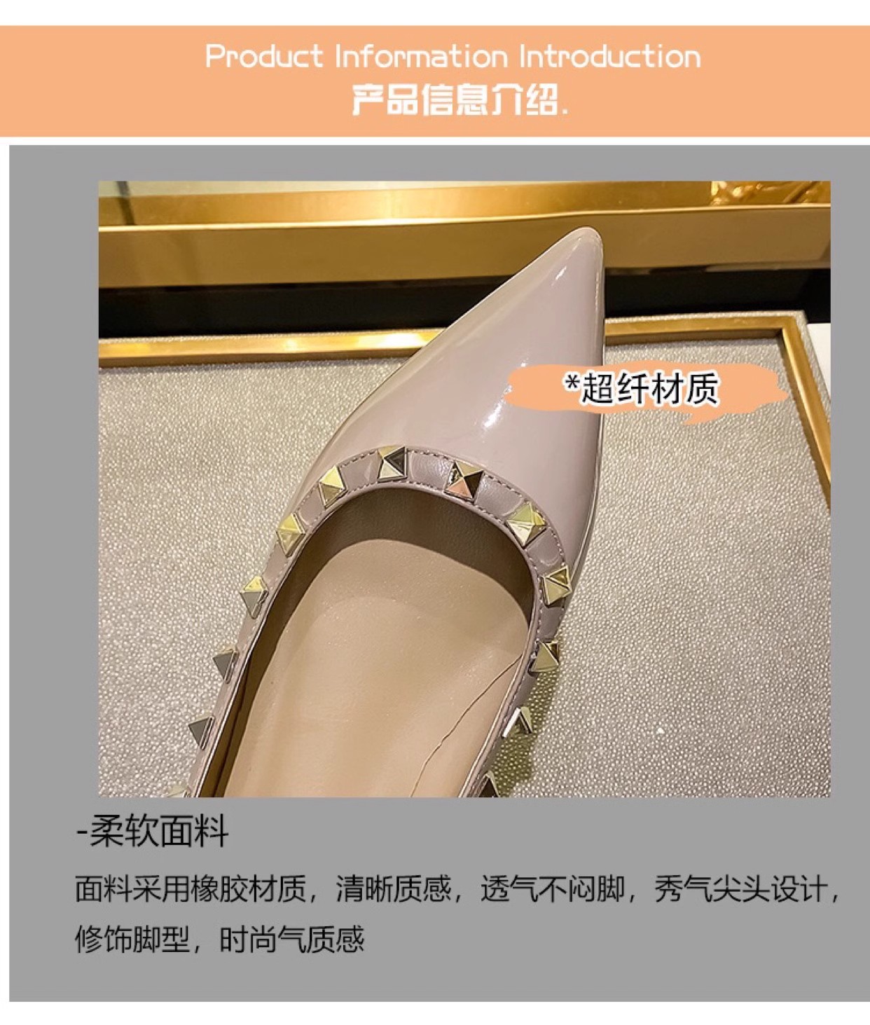 재고 ~ V 가족 네일 신발 여성 2024 새로운 패션 얕은 입 부드러운 바닥 조커 특허 가죽 뾰족한 플랫 신발 여성