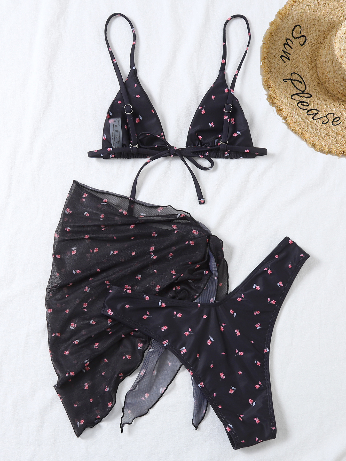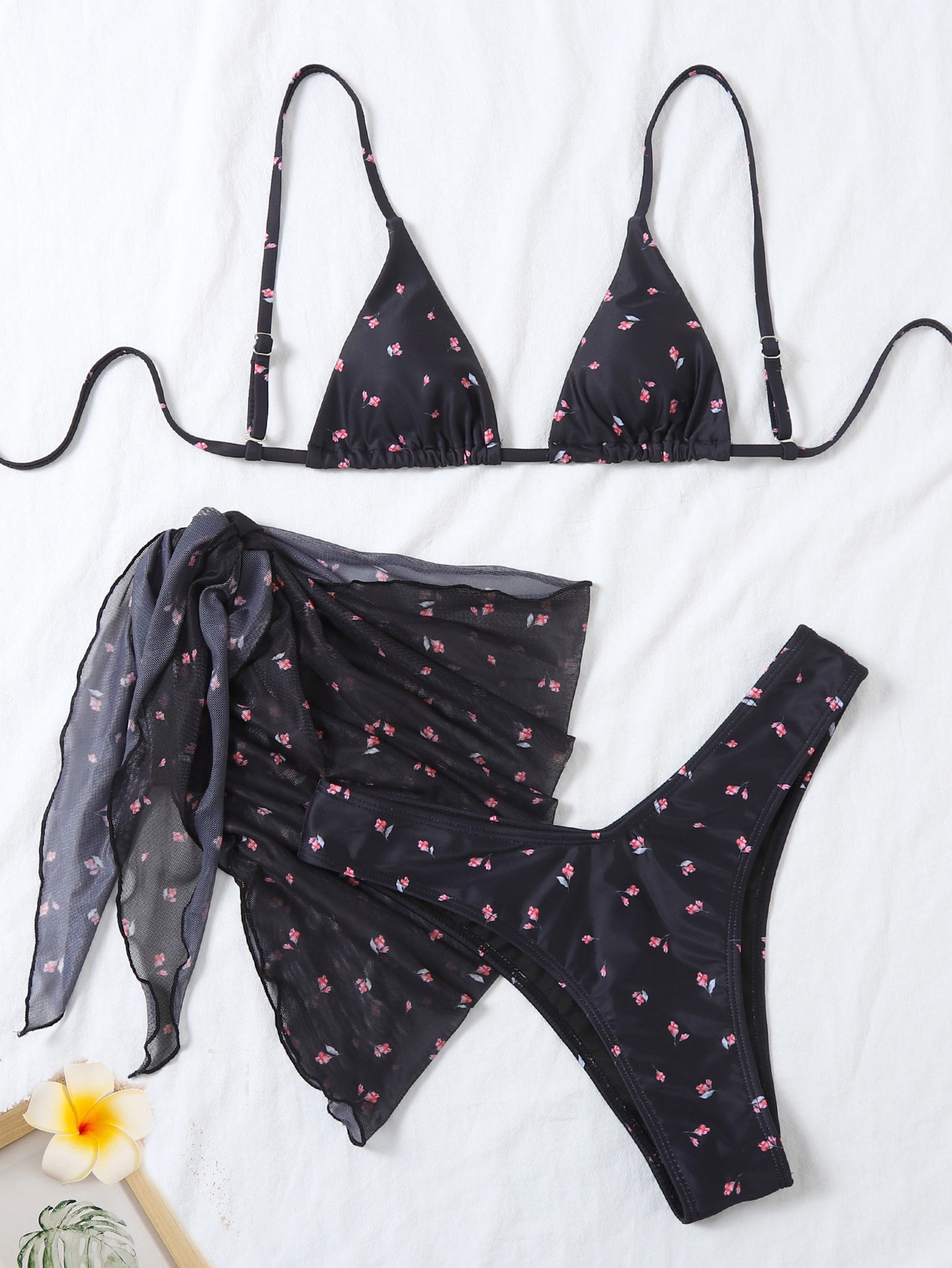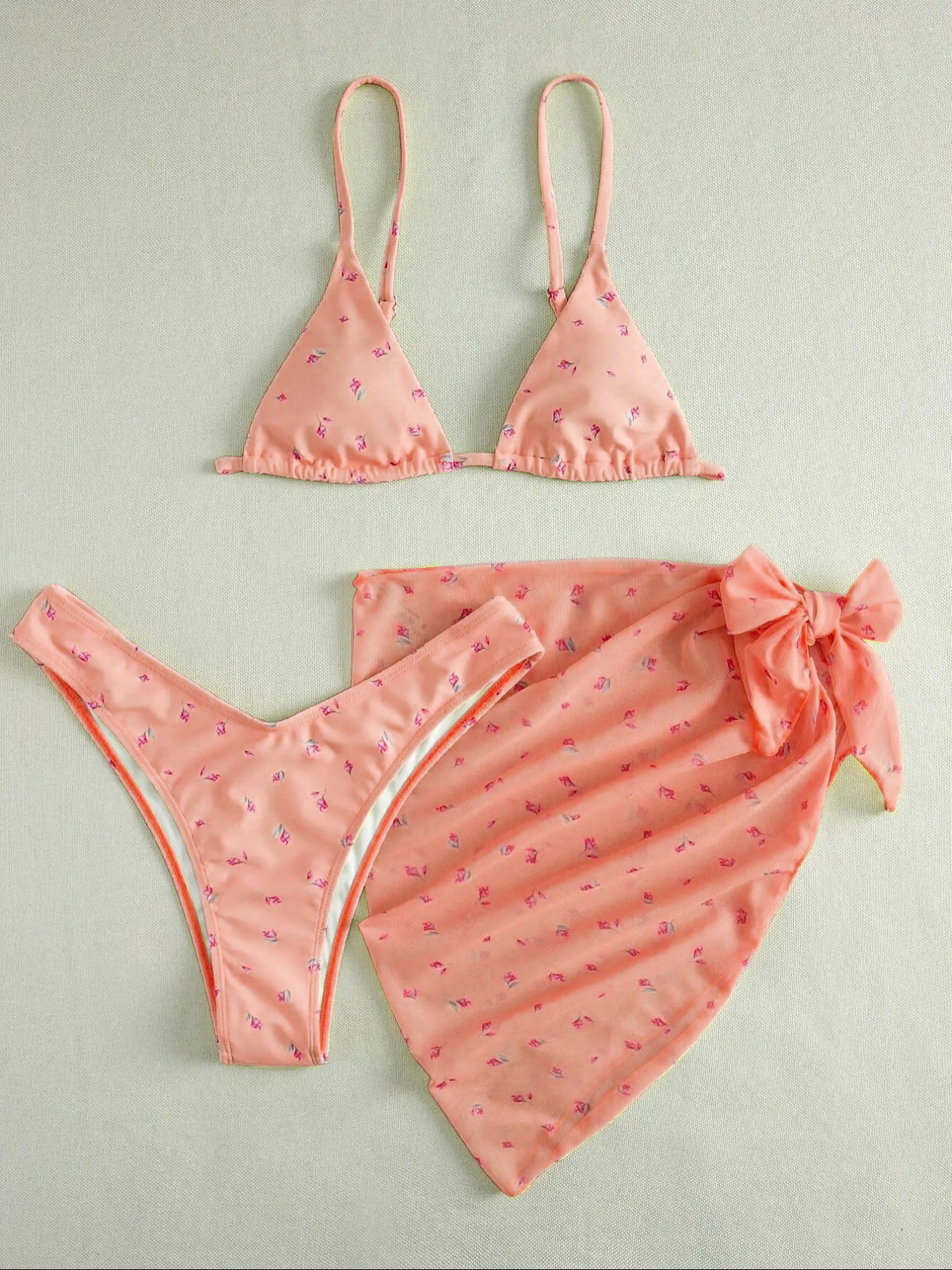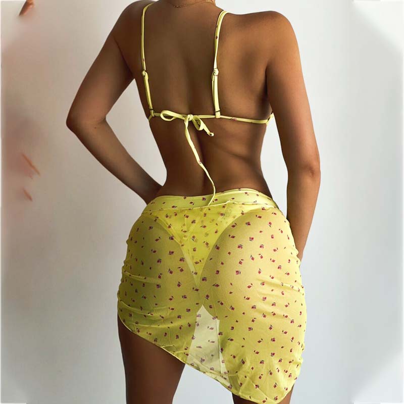 유럽과 미국의 섹시한 3 피스 수영복 꽃 무늬 비키니 스트랩 오버 스커트 수영복 여성용 캔디 컬러 프린트 스팟 도매스토어 가기