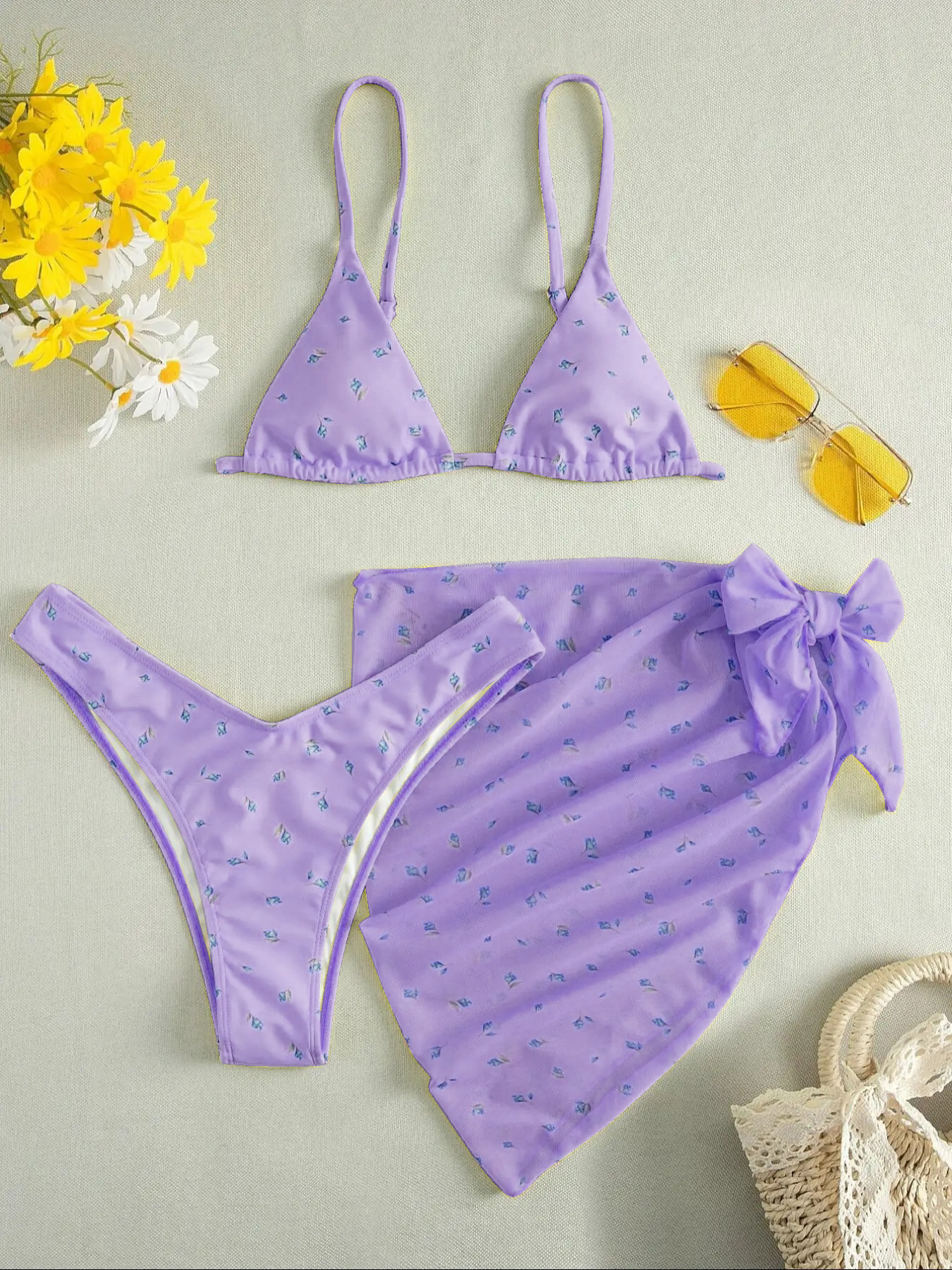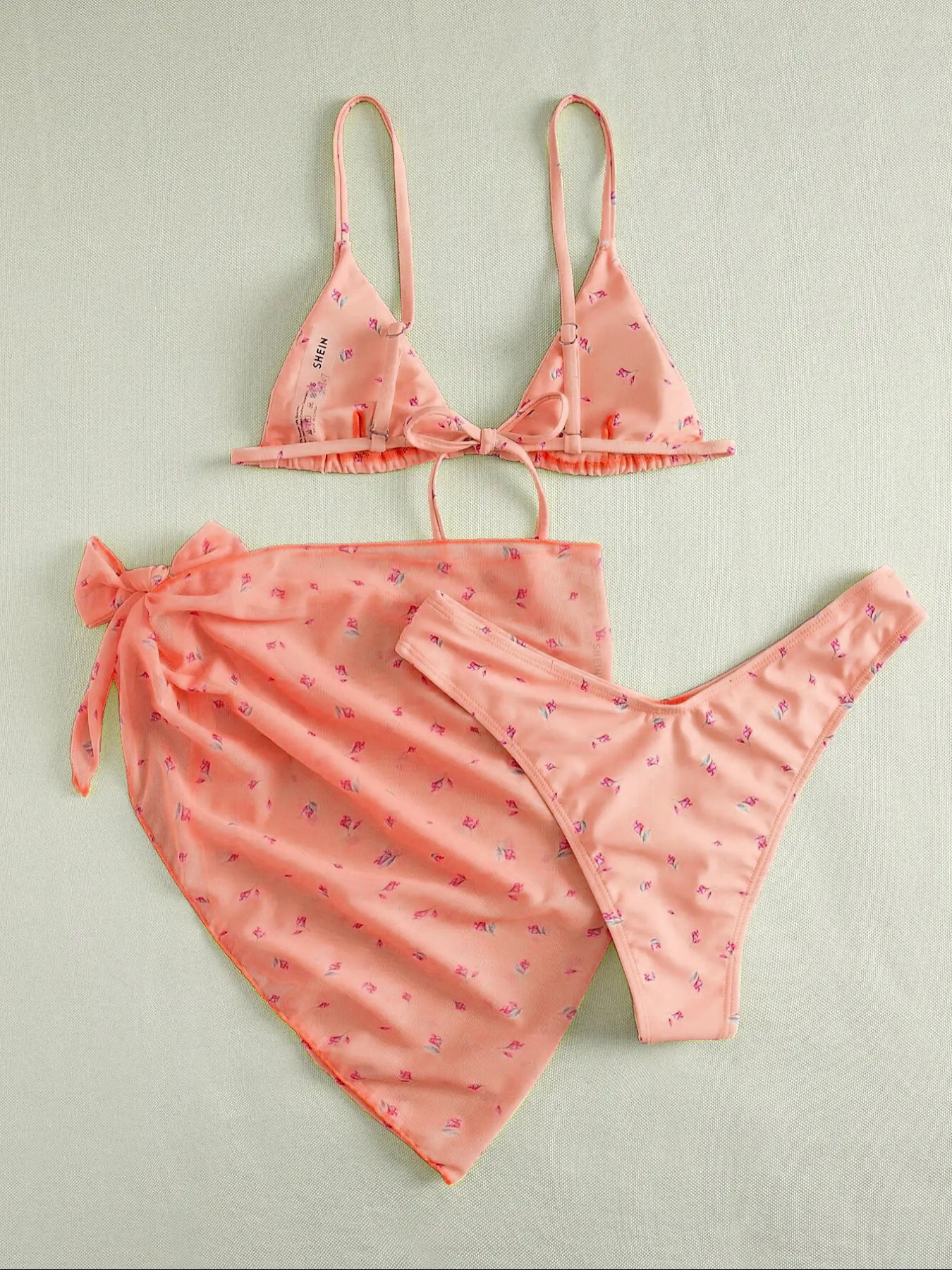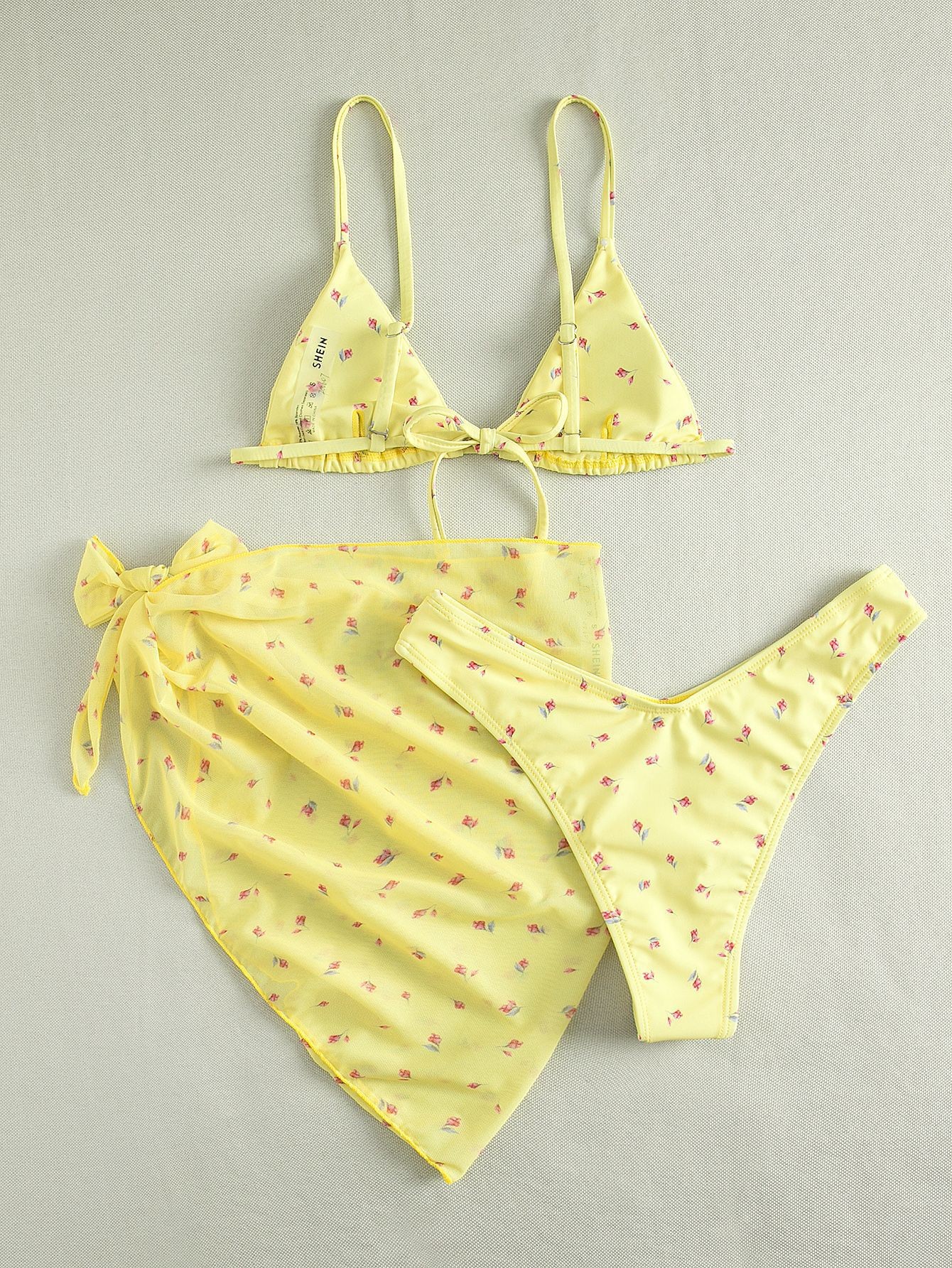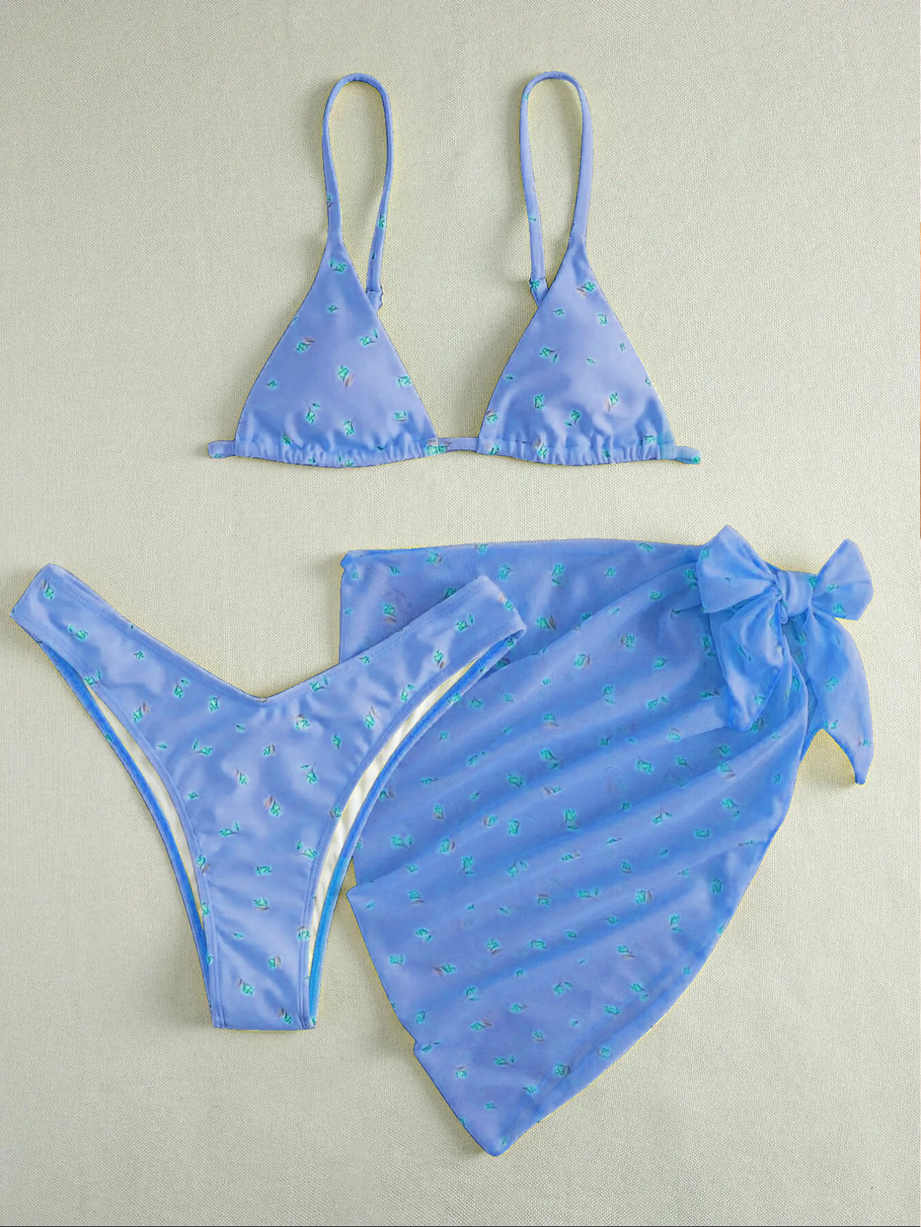 유럽과 미국의 섹시한 3 피스 수영복 꽃 무늬 비키니 스트랩 오버 스커트 수영복 여성용 캔디 컬러 프린트 스팟 도매스토어 가기