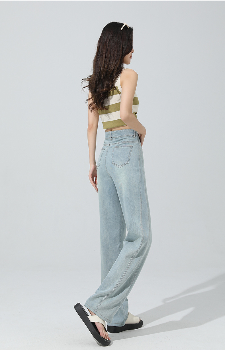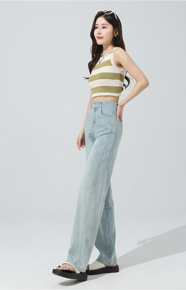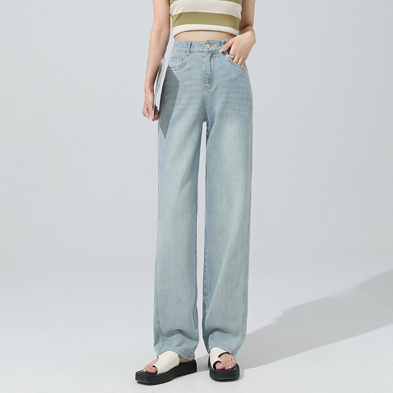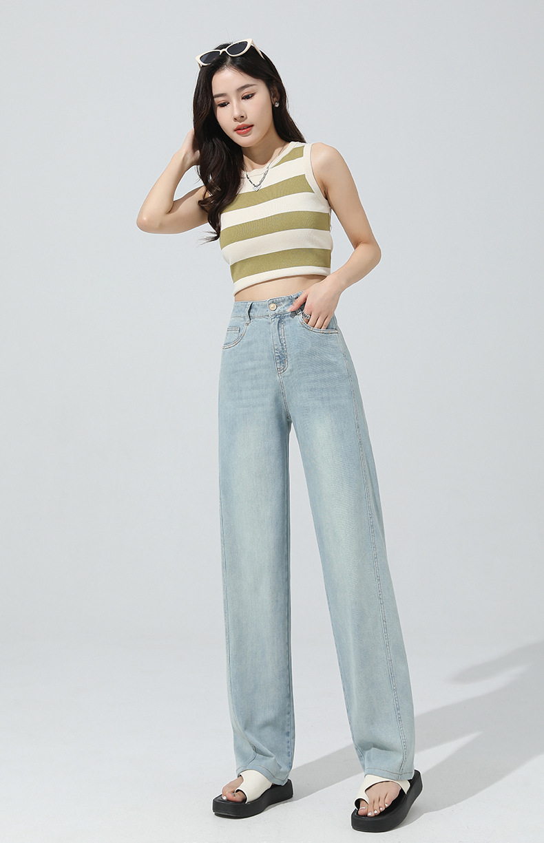얇은 높은 허리 좁은 넓은 다리 청바지 여자 2024 년 여름 새로운 슬리밍 올 매치 드랩 스트레이트 바지 8101스토어 가기