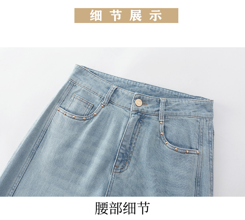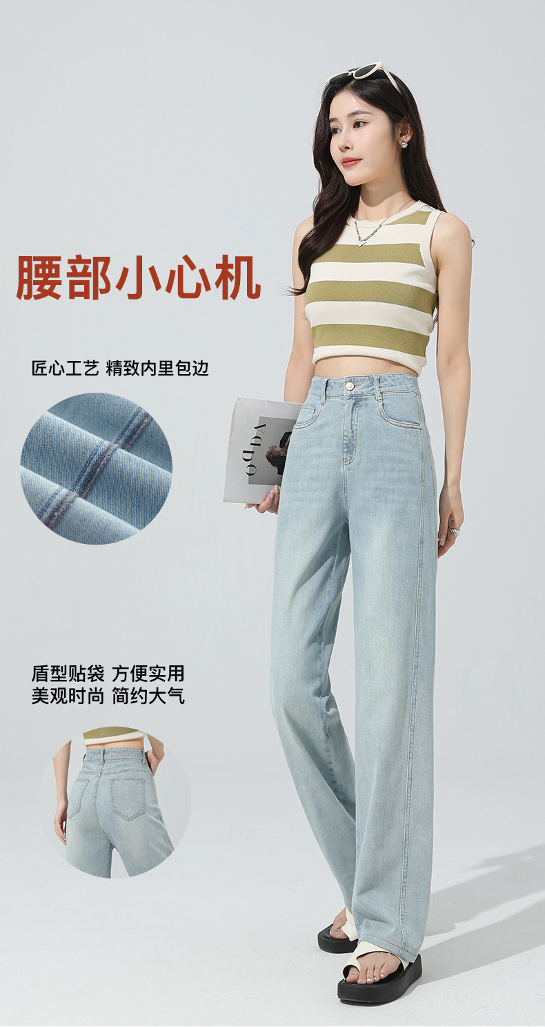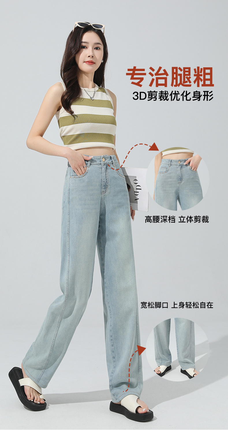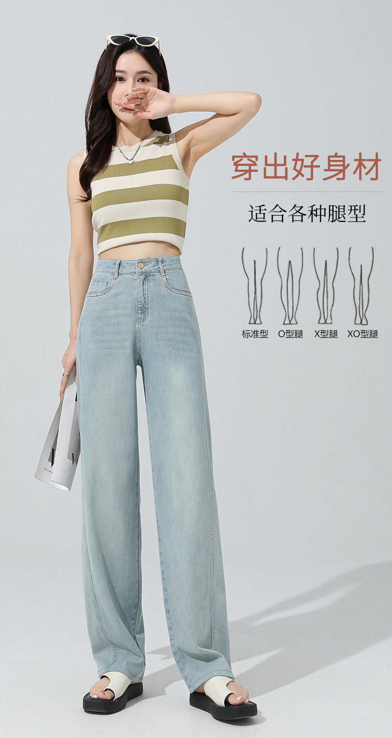 얇은 높은 허리 좁은 넓은 다리 청바지 여자 2024 년 여름 새로운 슬리밍 올 매치 드랩 스트레이트 바지 8101스토어 가기
