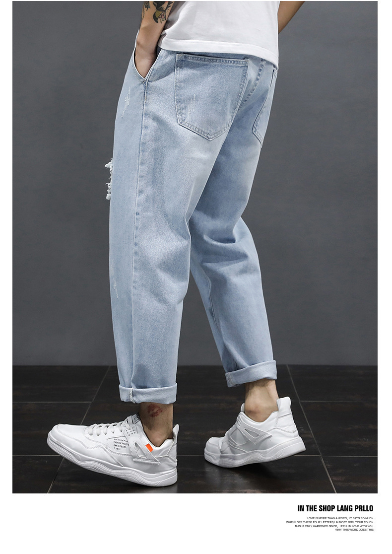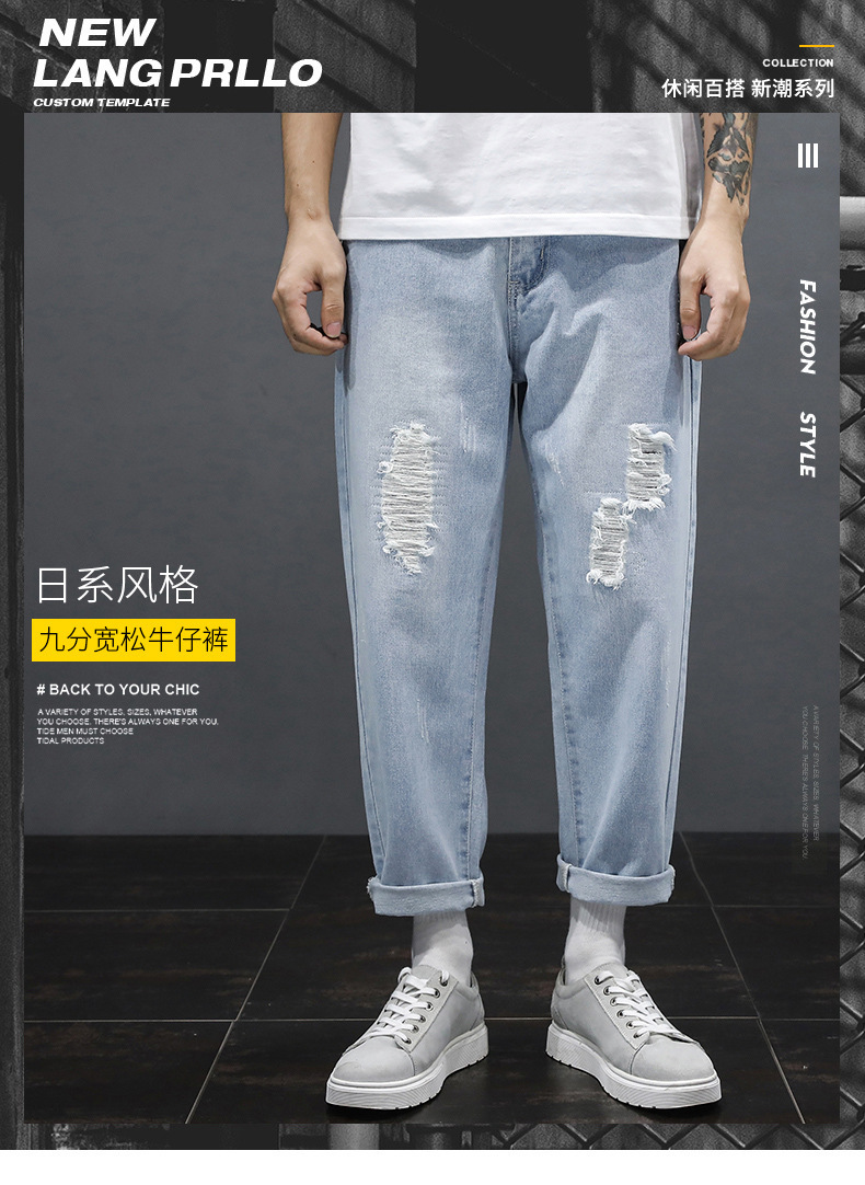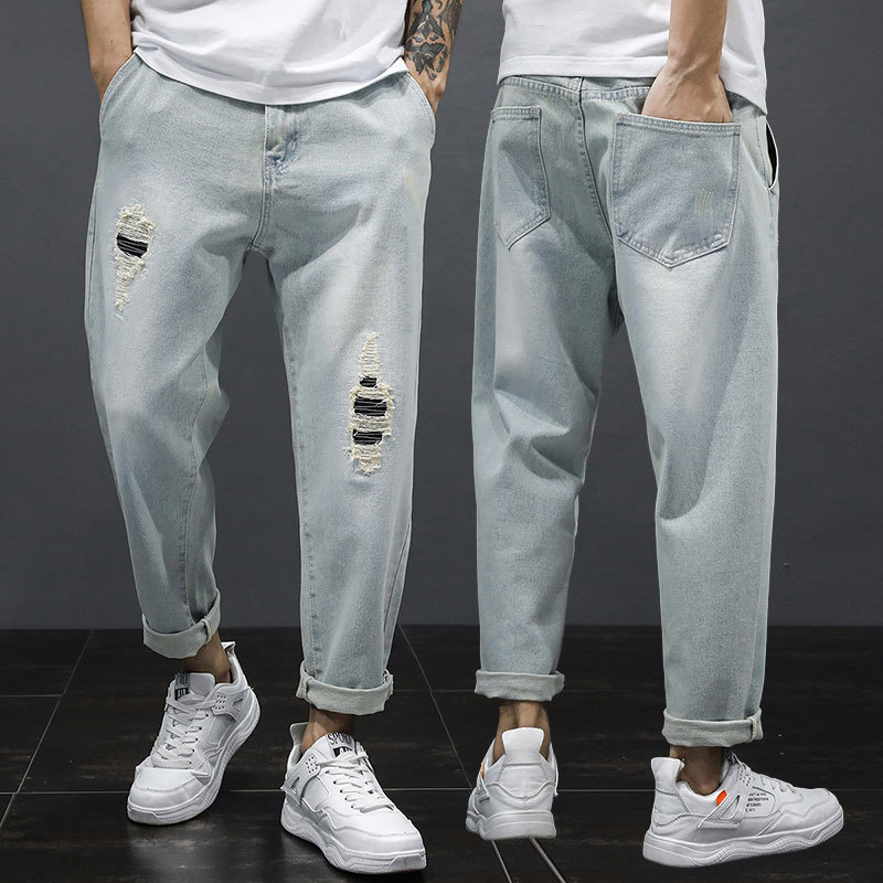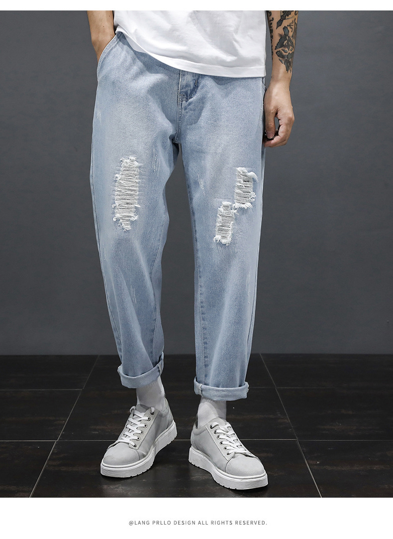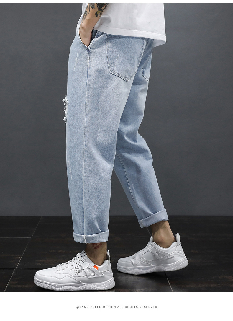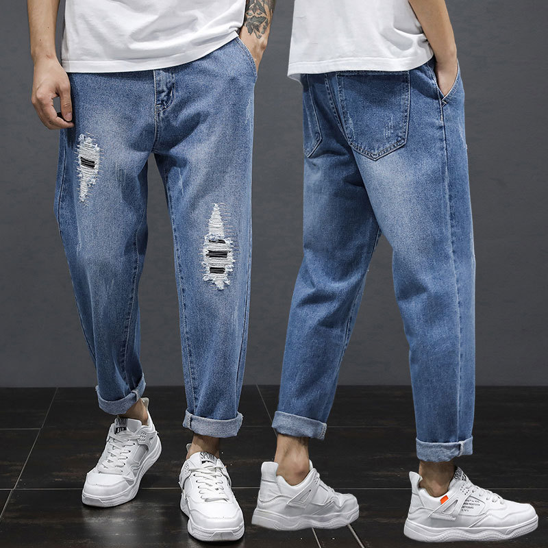 찢어진 청바지 남자 여름 2024 새로운 패션 브랜드 루즈 스트레이트 캐주얼 올 매치 얇은 남자 자른 바지