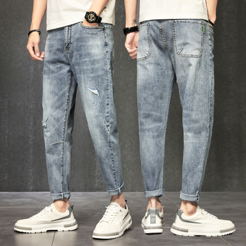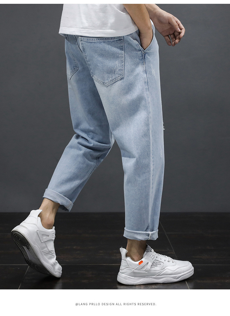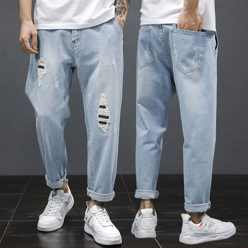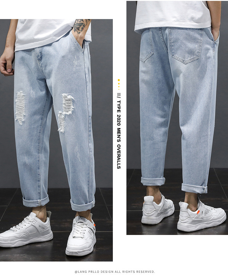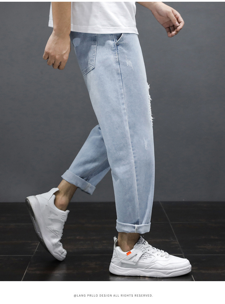 찢어진 청바지 남자 여름 2024 새로운 패션 브랜드 루즈 스트레이트 캐주얼 올 매치 얇은 남자 자른 바지