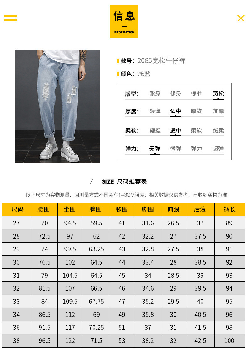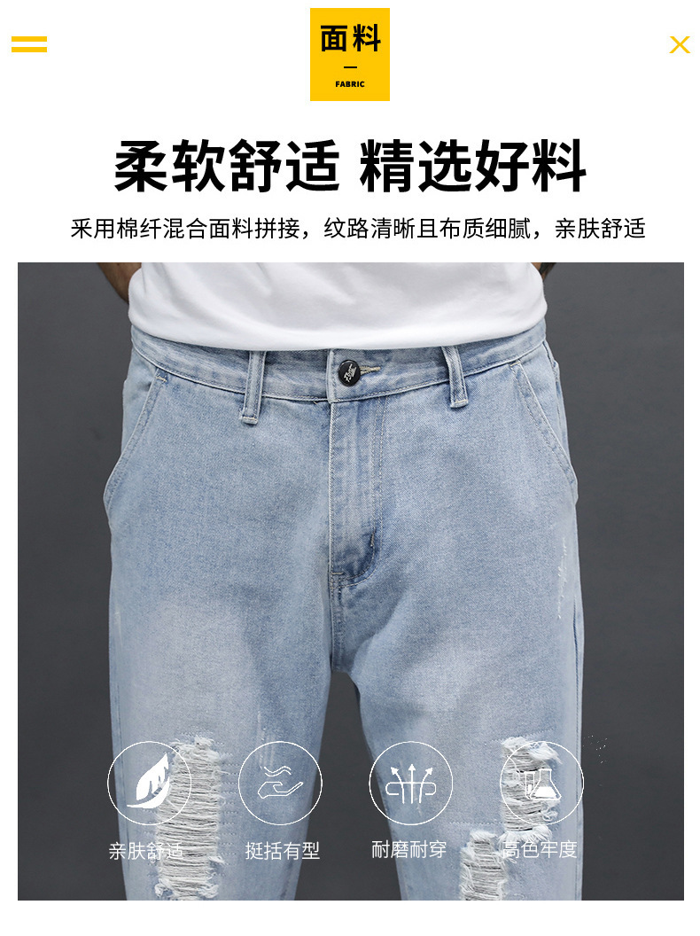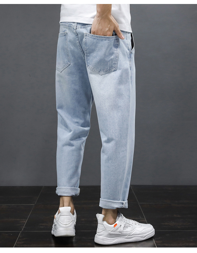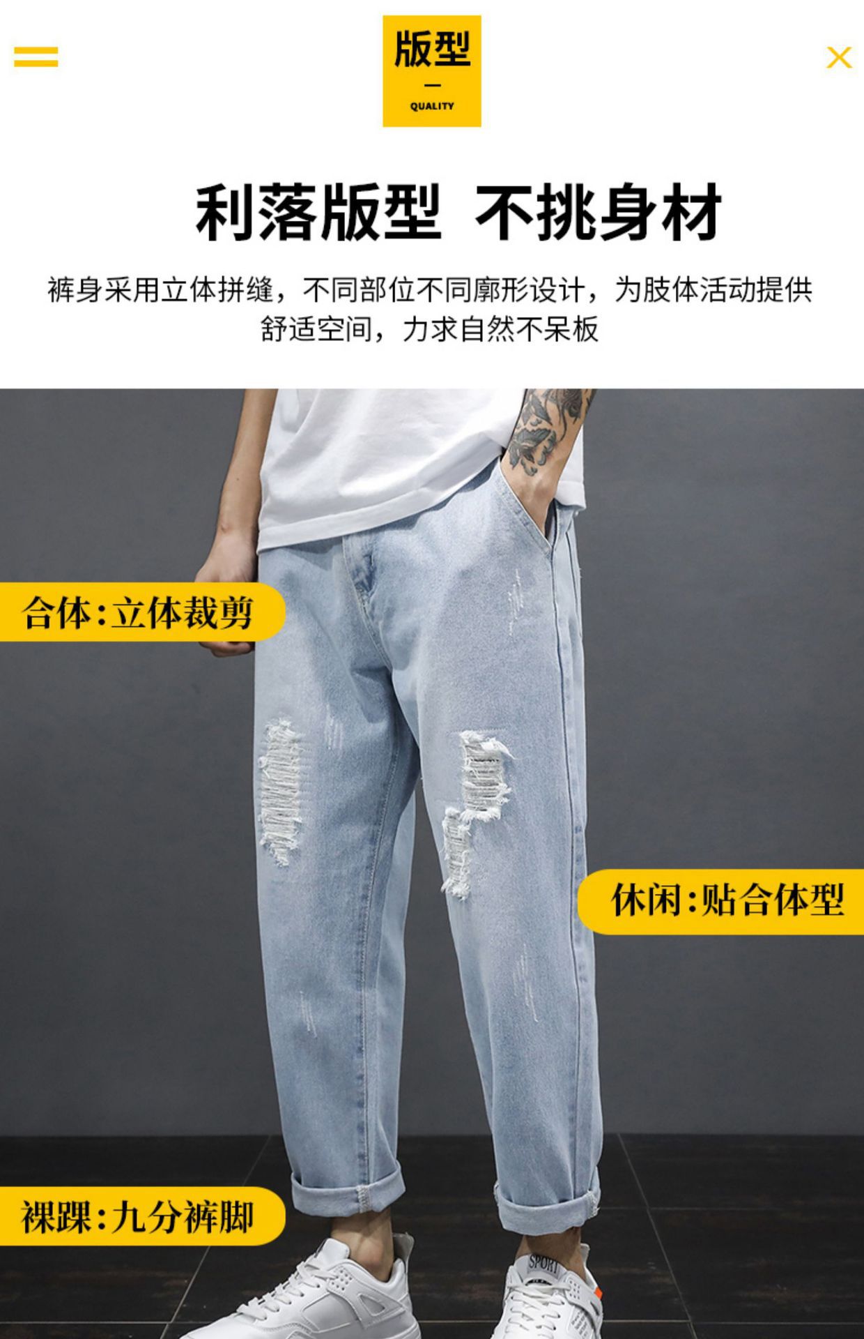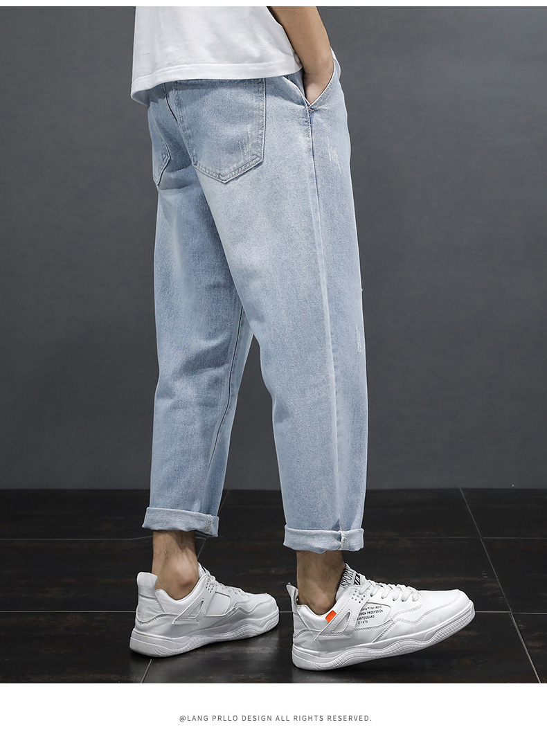 찢어진 청바지 남자 여름 2024 새로운 패션 브랜드 루즈 스트레이트 캐주얼 올 매치 얇은 남자 자른 바지