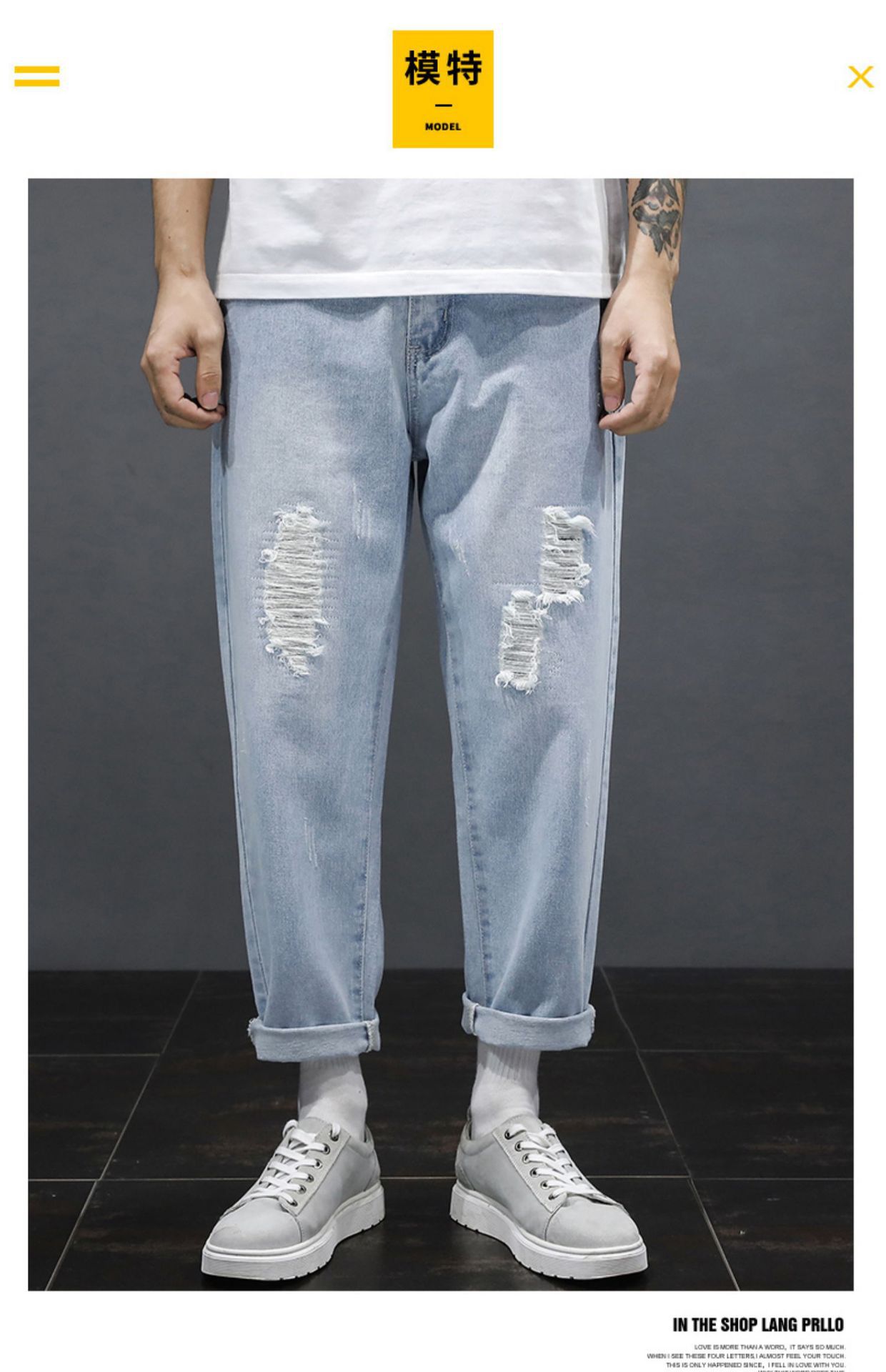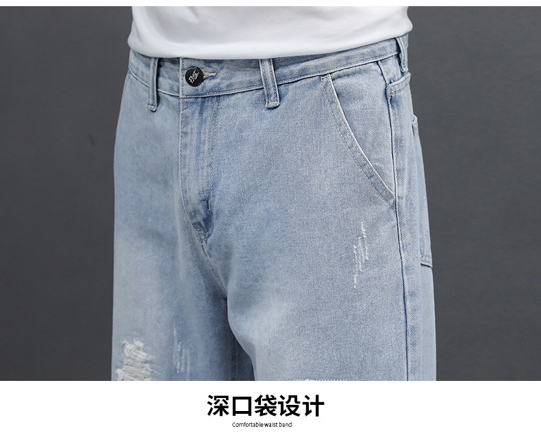 찢어진 청바지 남자 여름 2024 새로운 패션 브랜드 루즈 스트레이트 캐주얼 올 매치 얇은 남자 자른 바지스토어 가기