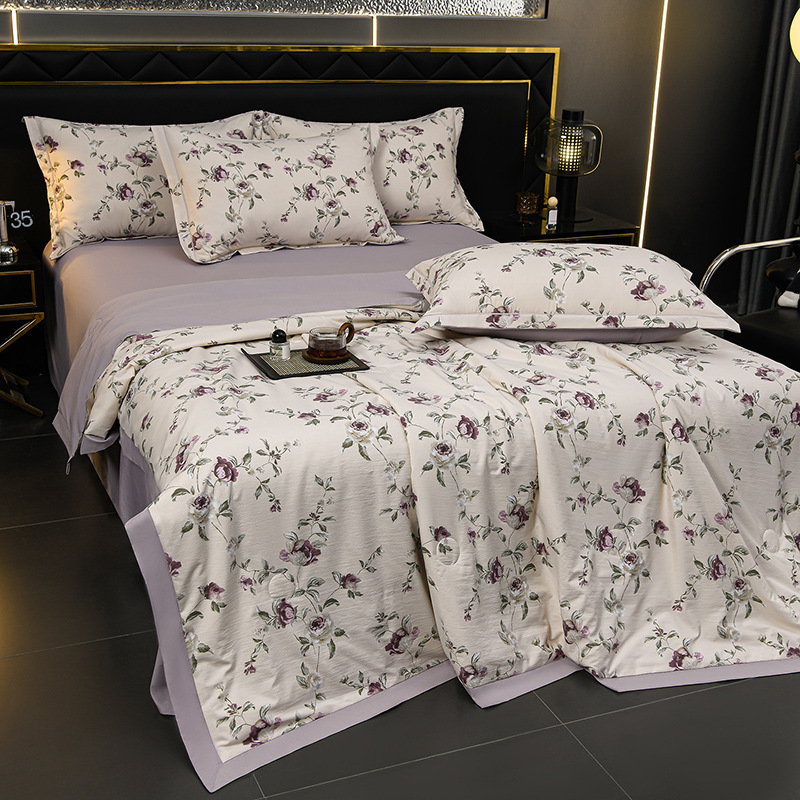 새로운 씻은 텐셀 여름 퀼트 4 피스 세트 쿨 실크 여름 이불 에어컨 이불 여름 선물 얇은 이불 도매