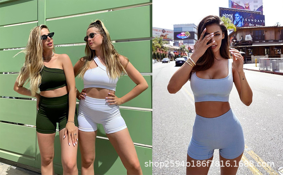새로운 조끼 요가 의류 반바지 세트 여성의 여름 엉덩이 높은 허리 꽉 달리기 피트니스 의류 3 종 세트스토어 가기