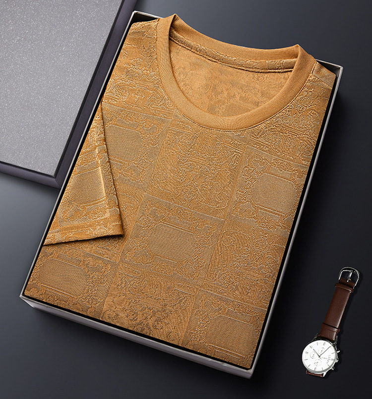 중년 남자 여름 가을베이스 셔츠 한국 캐주얼 올매치 단색 반팔 티셔츠 아빠의 둥근 목 스웨터스토어 가기