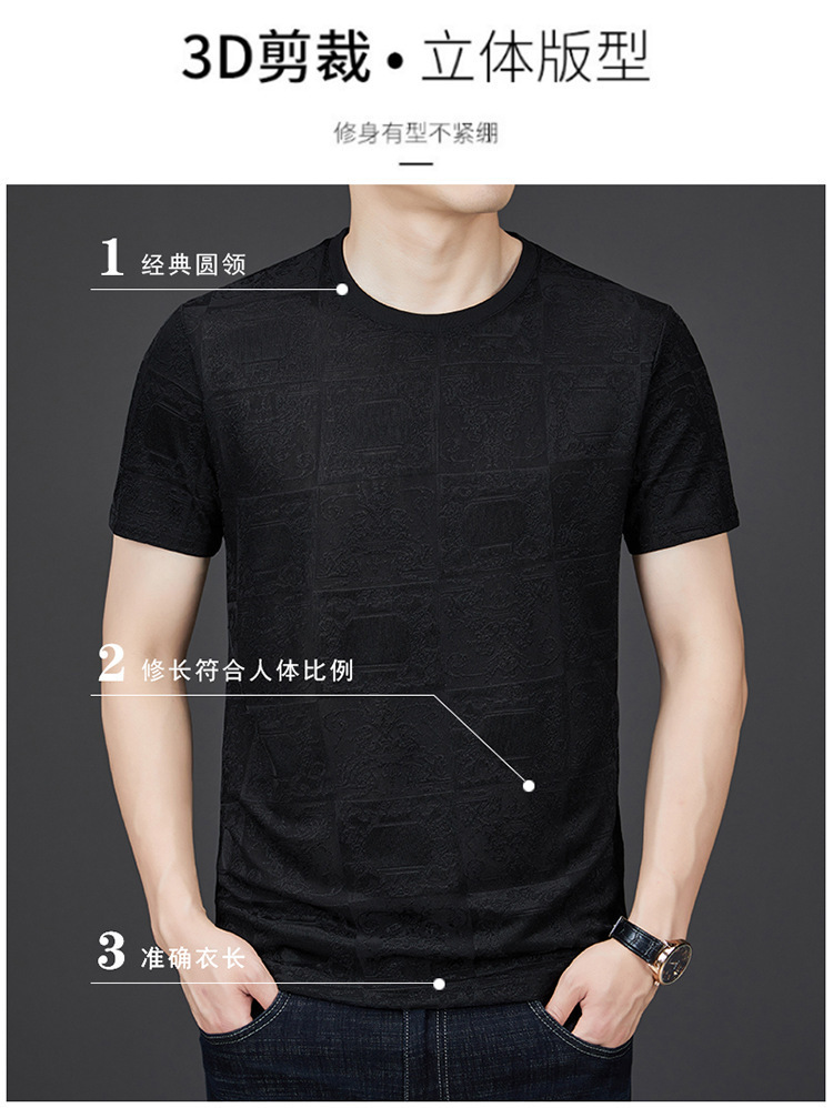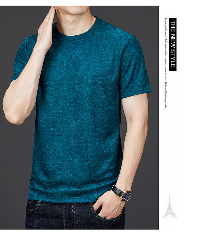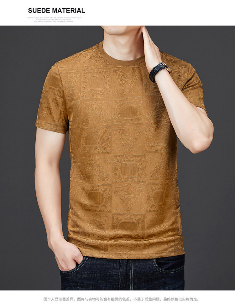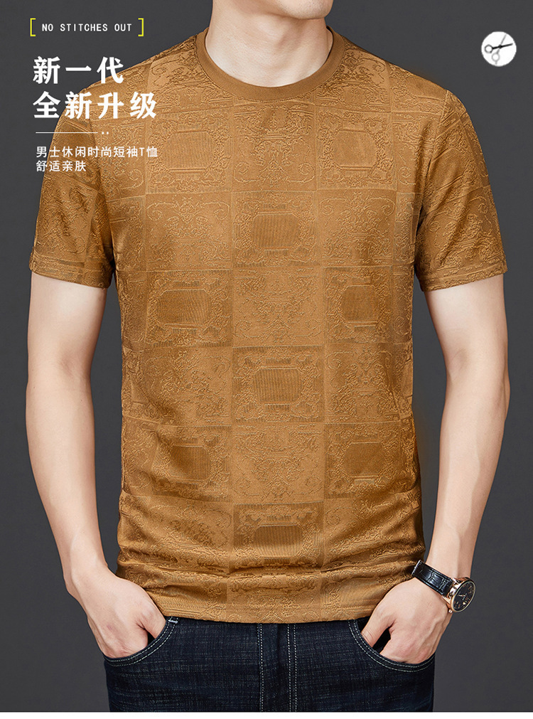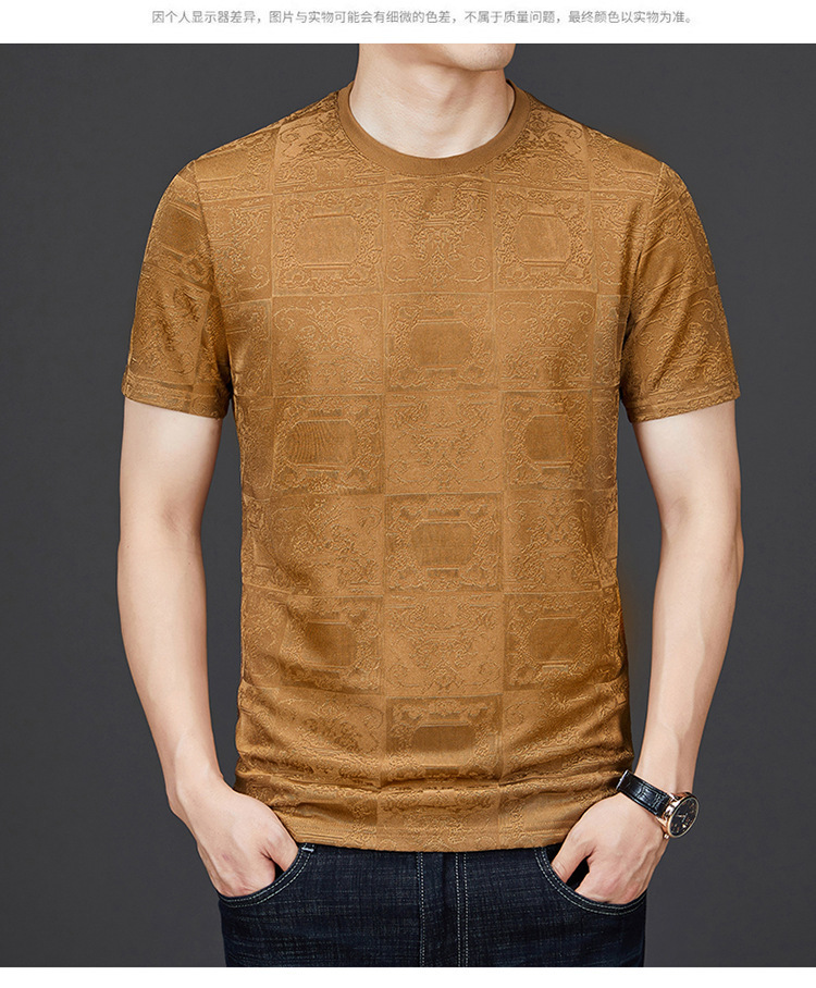 중년 남자 여름 가을베이스 셔츠 한국 캐주얼 올매치 단색 반팔 티셔츠 아빠의 둥근 목 스웨터