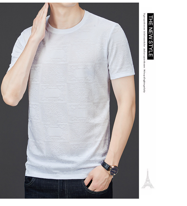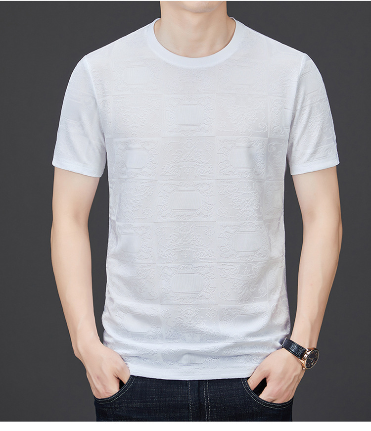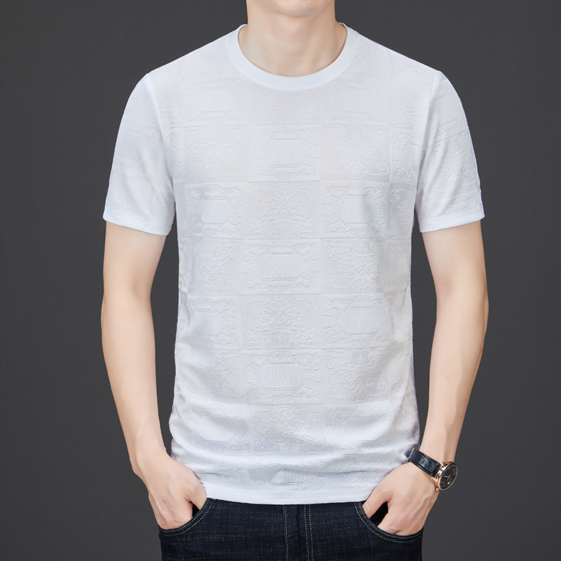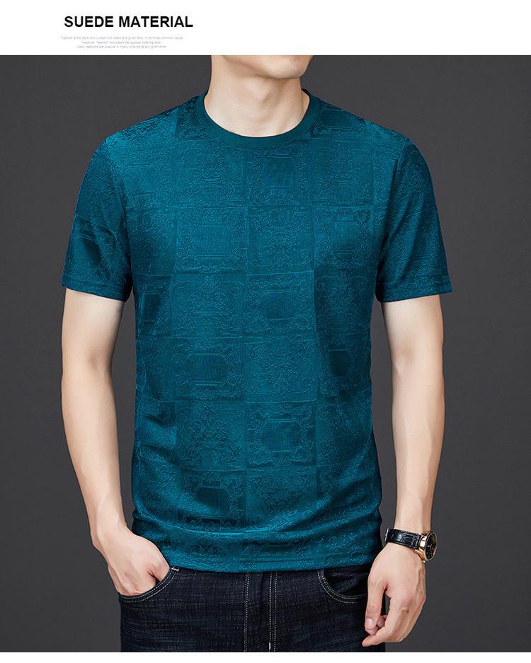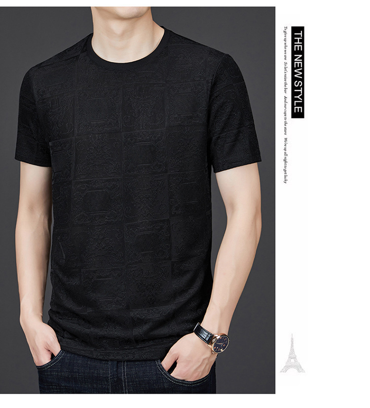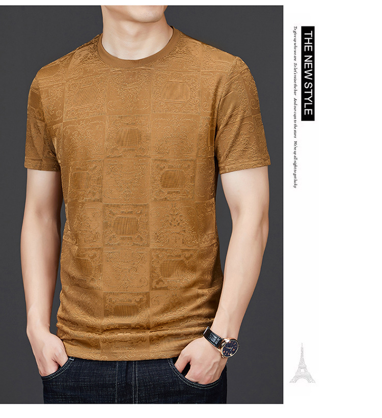 중년 남자 여름 가을베이스 셔츠 한국 캐주얼 올매치 단색 반팔 티셔츠 아빠의 둥근 목 스웨터