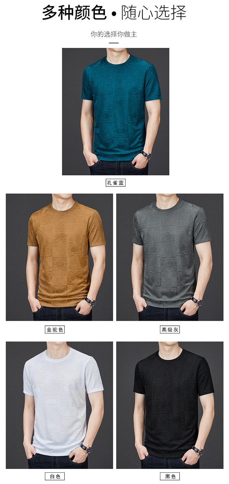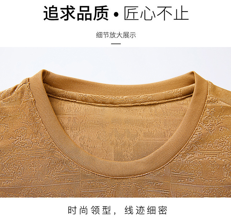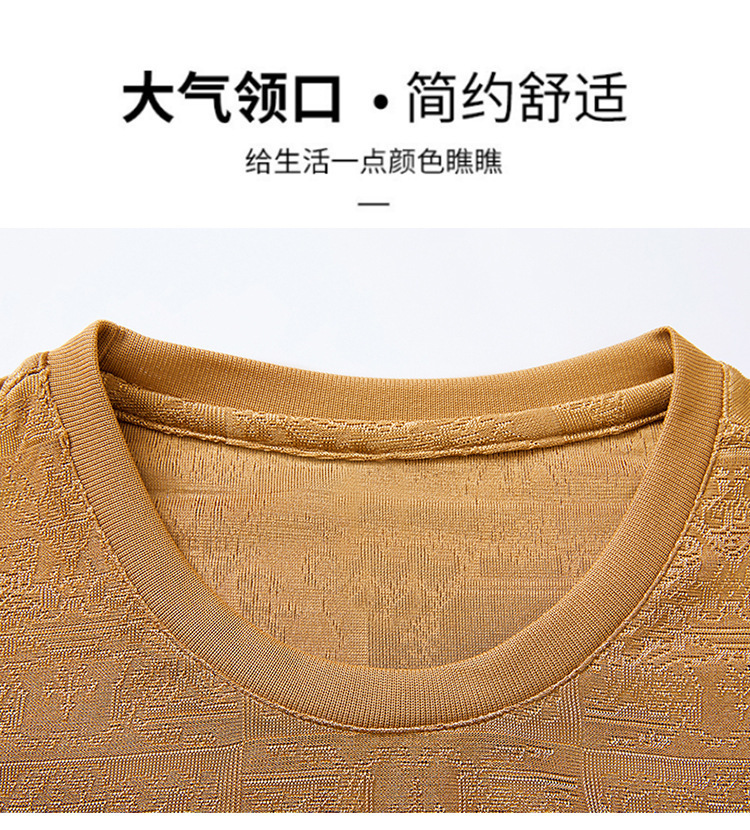 中年男士夏秋款打底衫韩版休闲百搭纯色短袖体恤衫爸爸装圆领卫衣