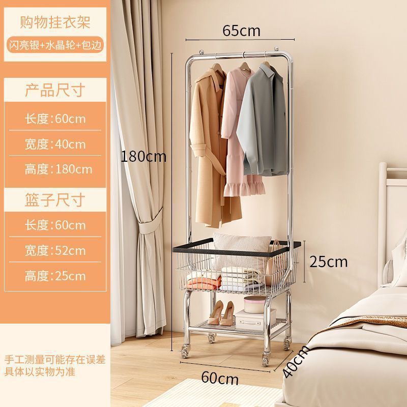 • 빛나는 실버 옷걸이 저장 바구니 [고무 바퀴]