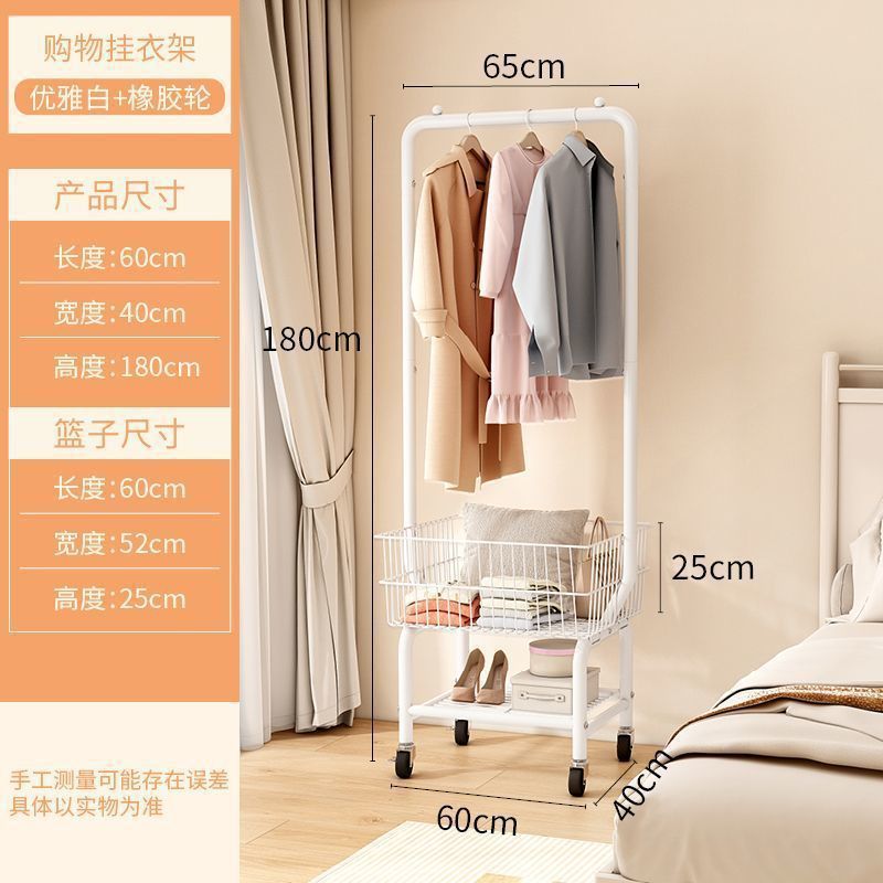• 흰색 옷걸이 보관 바구니 [고무 바퀴]