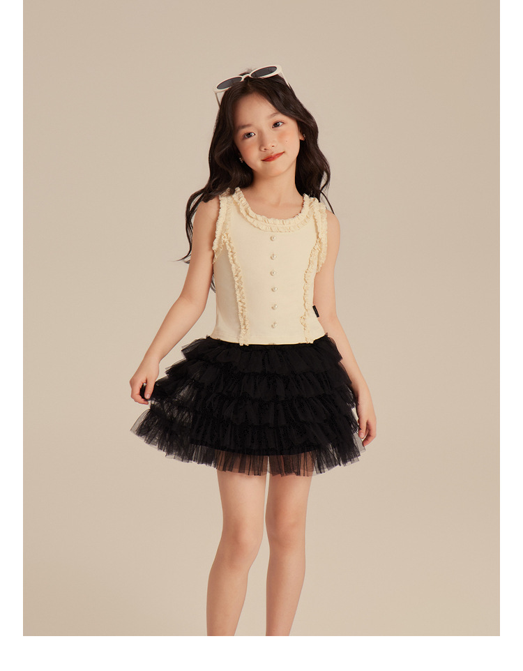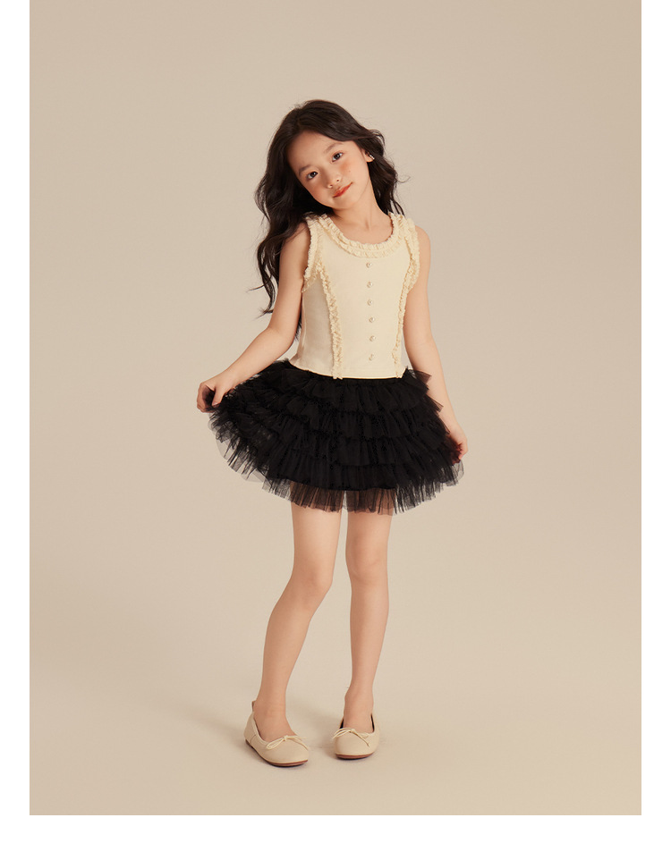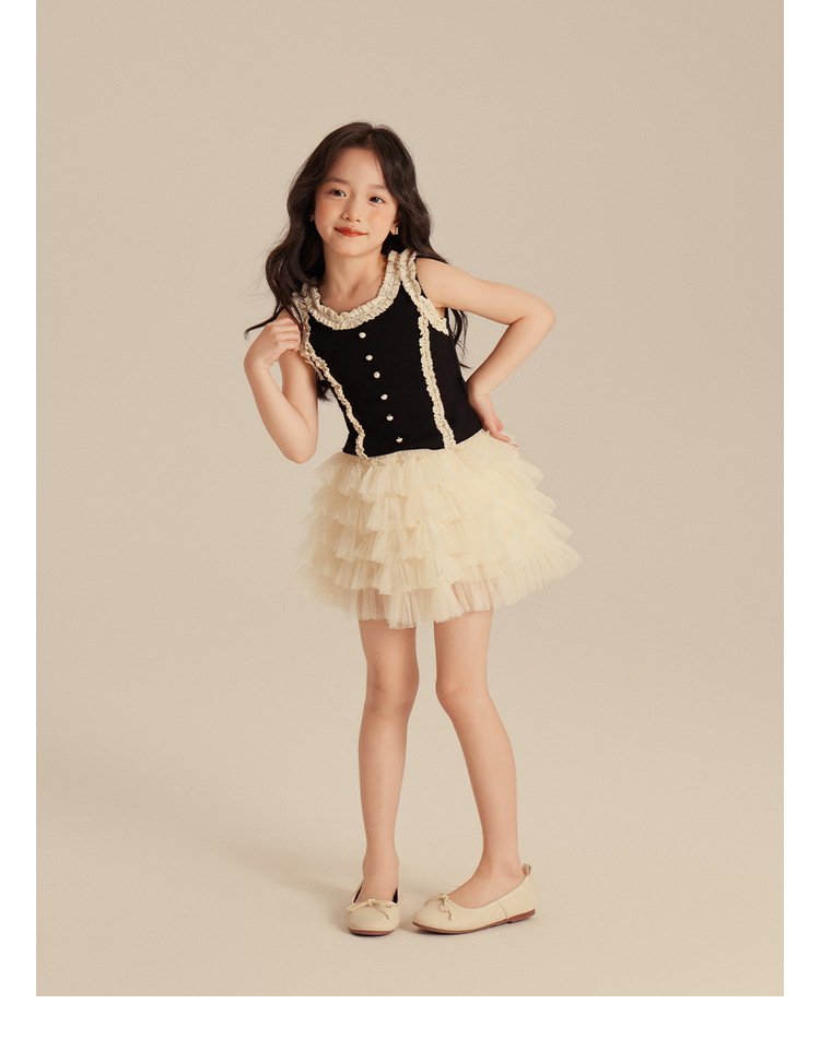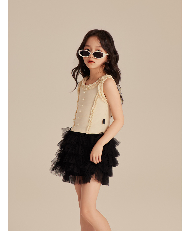 Amybaby 소녀의 치마 여름 새로운 스타일의 단색 케이크 스커트 메쉬 공주 스커트 미끄럼 방지 스커트
