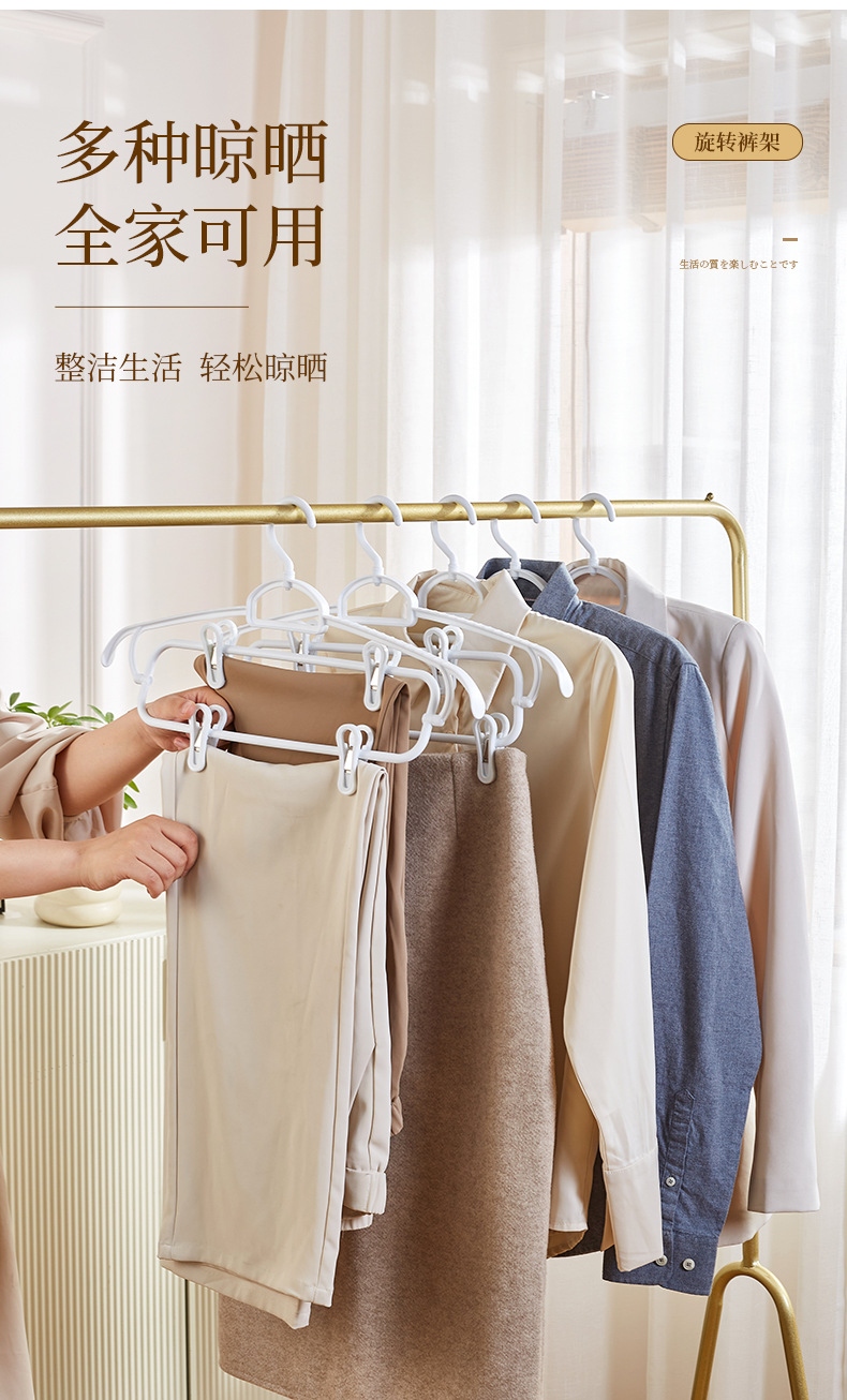 흔적 없는 회전식 옷걸이, 클립 포함, 미끄럼 방지, 두꺼운 바지 클립, 플라스틱 옷걸이, 바지걸이스토어 가기