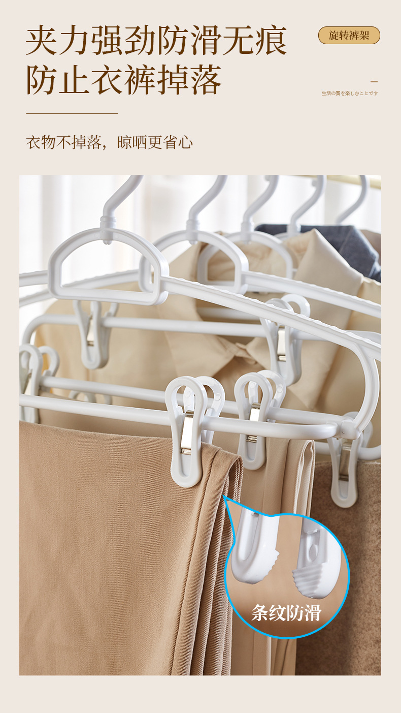 흔적 없는 회전식 옷걸이, 클립 포함, 미끄럼 방지, 두꺼운 바지 클립, 플라스틱 옷걸이, 바지걸이