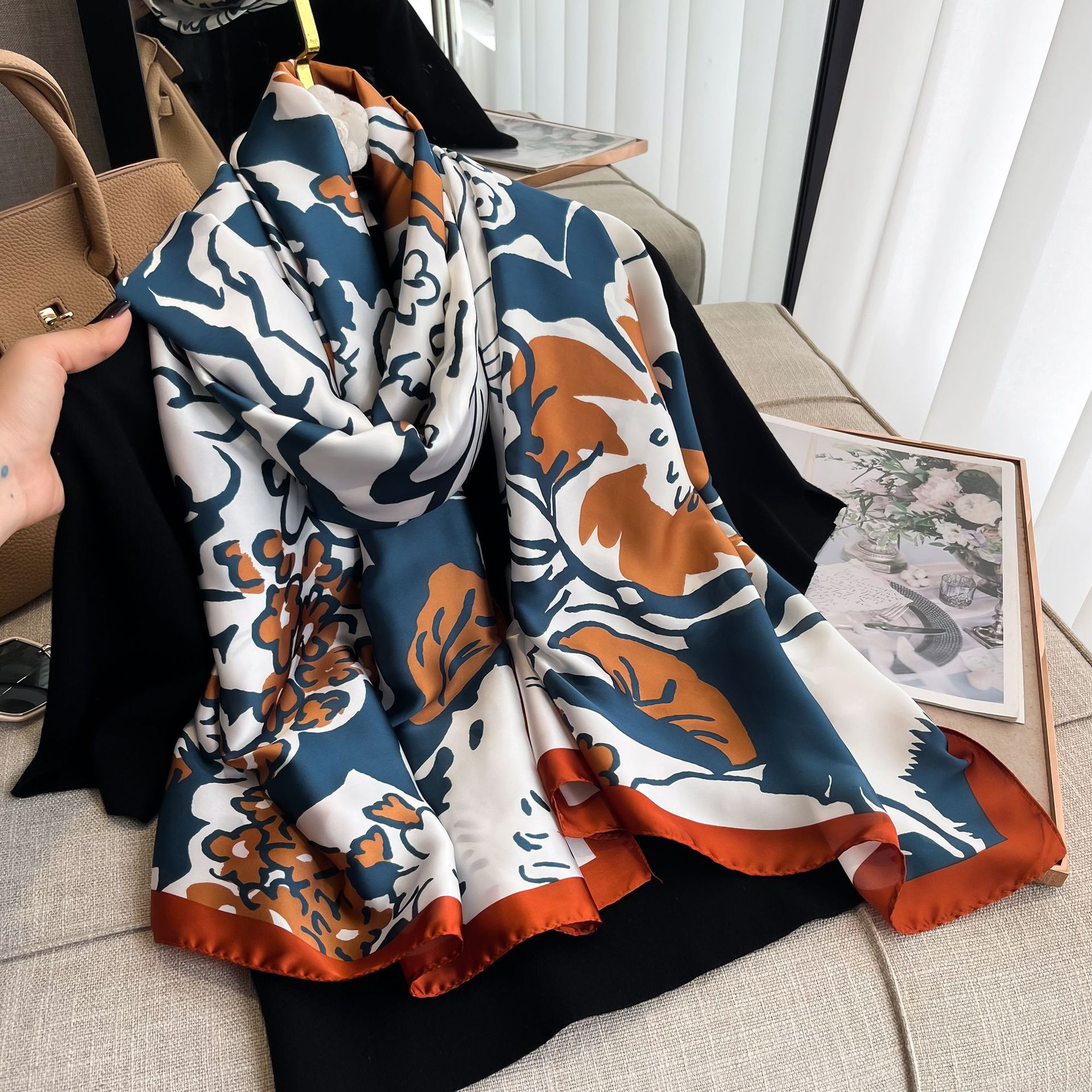 봄과 여름 새로운 실크 스카프 긴 세련 된 패션 여행 목도리 리징 위조 스카프 여성을위한 어머니의 올 매치 대형 스카프