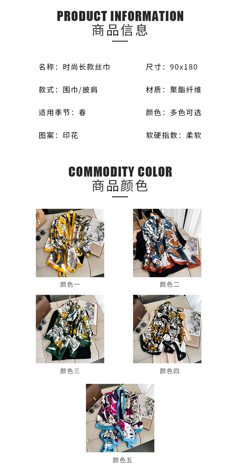 봄과 여름 새로운 실크 스카프 긴 세련 된 패션 여행 목도리 리징 위조 스카프 여성을위한 어머니의 올 매치 대형 스카프스토어 가기