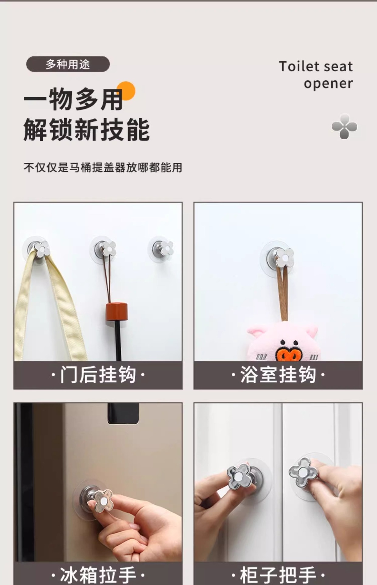 변기 뚜껑 리프터, 변기 뚜껑을 당기면 손이 더러워지지 않는 꽃 모양 변기 뚜껑 리프터