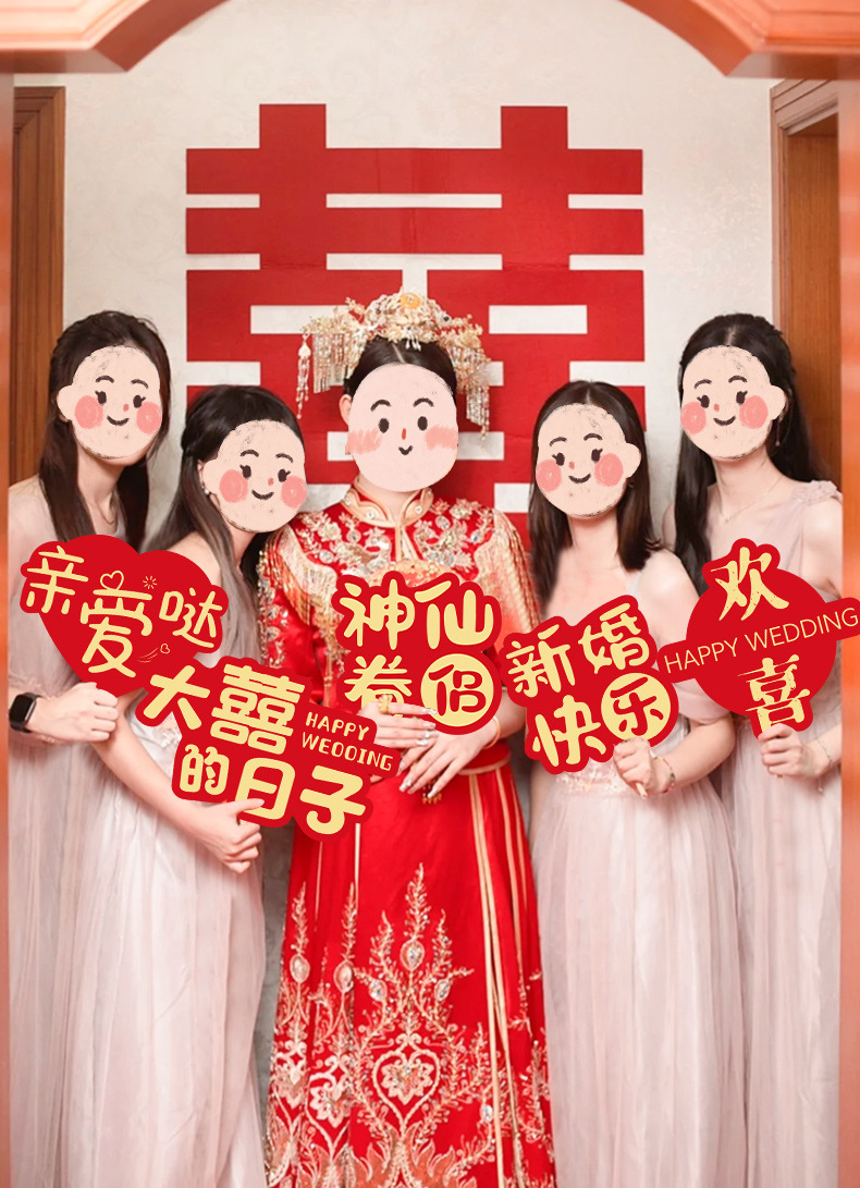 웨딩 웨딩 신부 들러리 그룹 웨딩 핸드 헬드 KT 보드 사진 소품스토어 가기