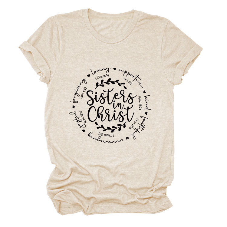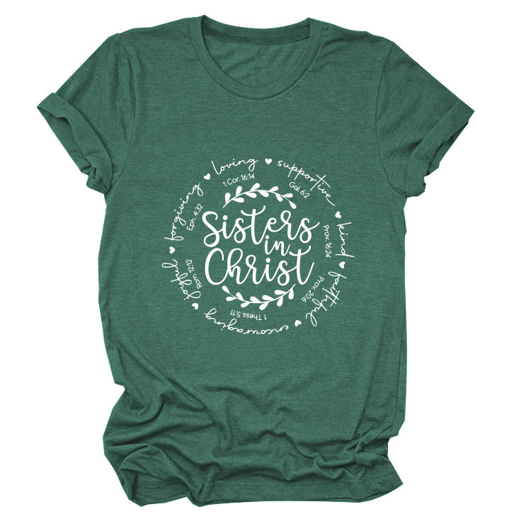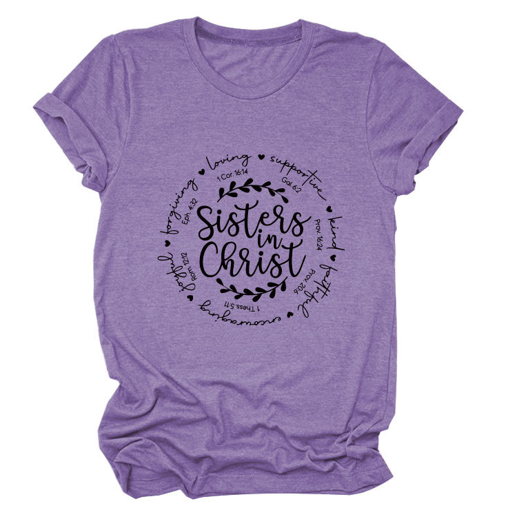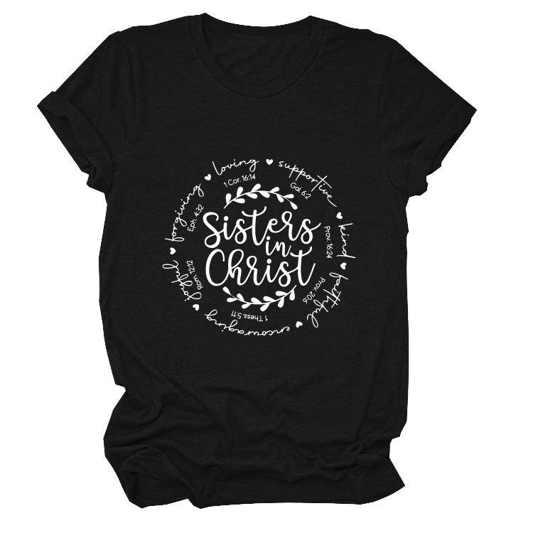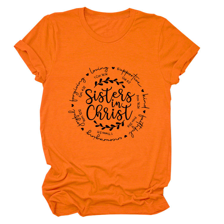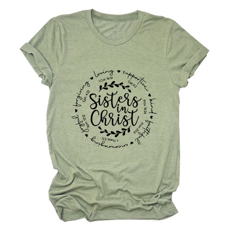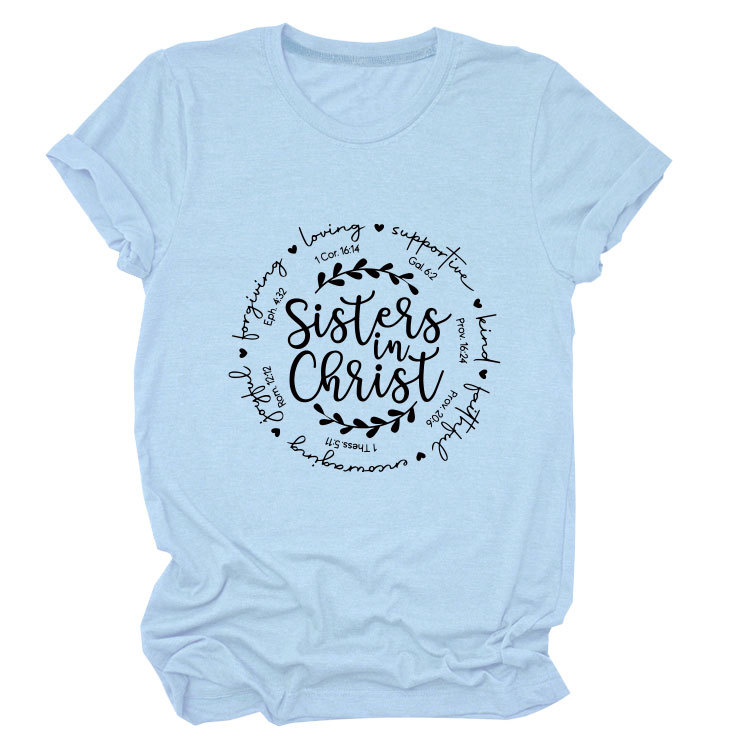 유럽과 미국의 캐주얼 크루 넥 여성 반팔 사랑을지지하는 자매, 그리스도 루즈 티셔츠