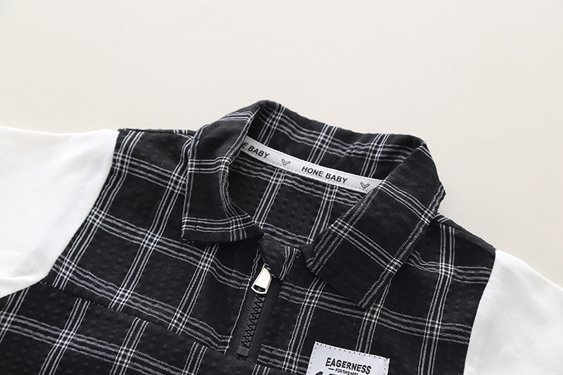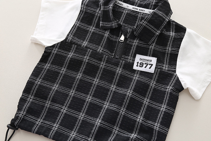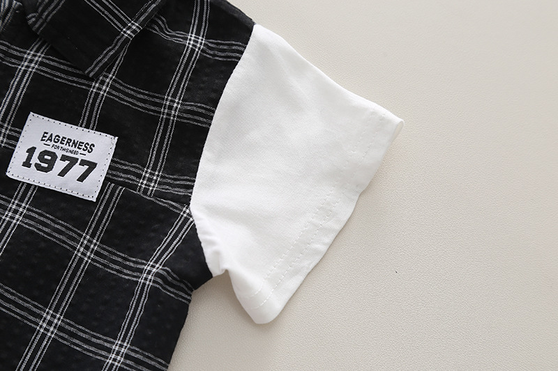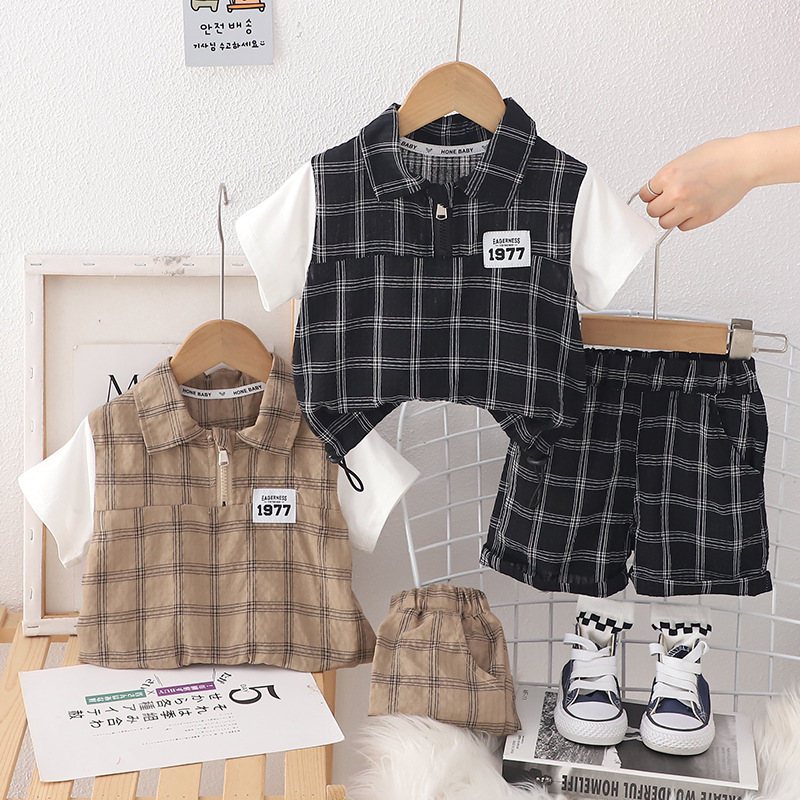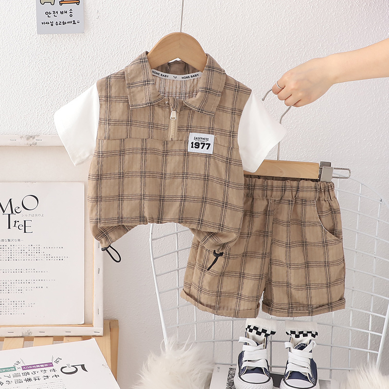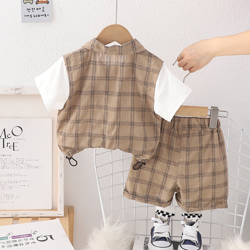 남자들의 여름 세트 2024 서양식 아기 여름 잘 생긴 옷 어린이 격자 무늬 반팔 반바지 투피스 유행 세트스토어 가기