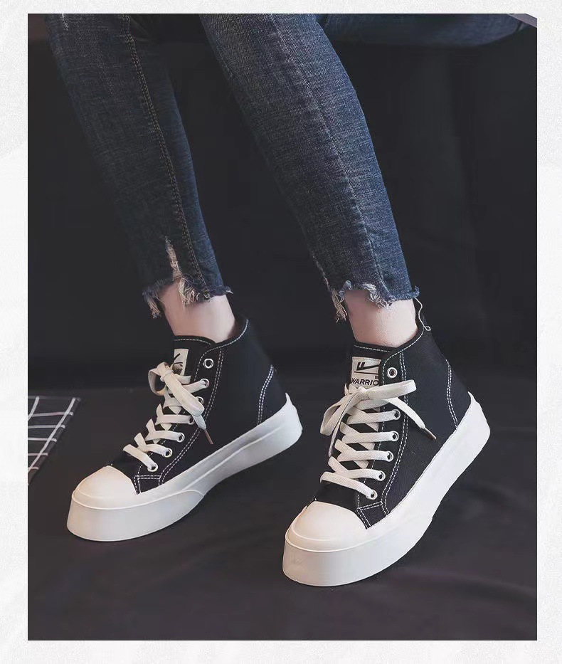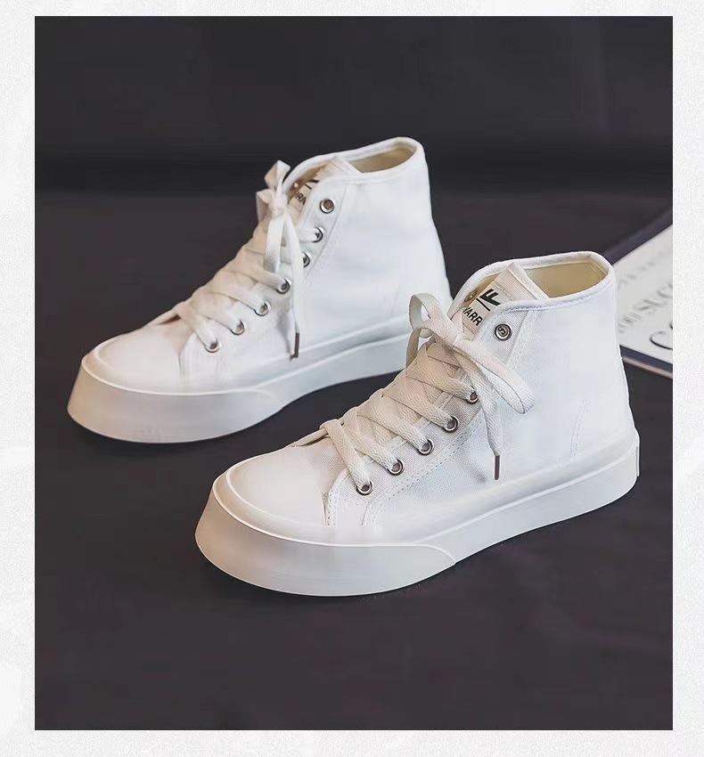 국산 여성용 하이탑 캔버스화 2024 여름 신상 만능 라운드토 두꺼운 밑창 화이트 스니커즈스토어 가기