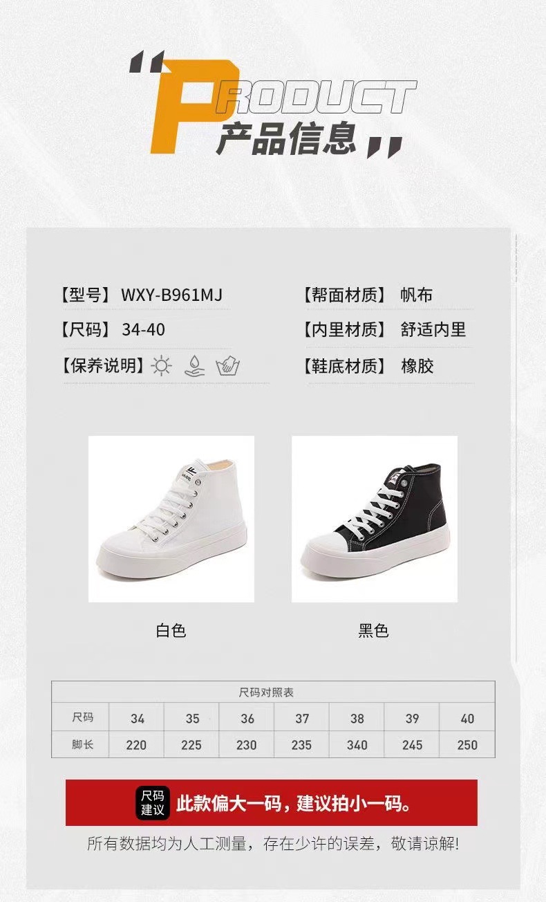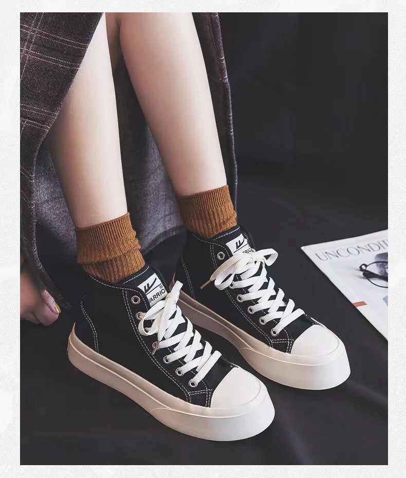 국산 여성용 하이탑 캔버스화 2024 여름 신상 만능 라운드토 두꺼운 밑창 화이트 스니커즈
