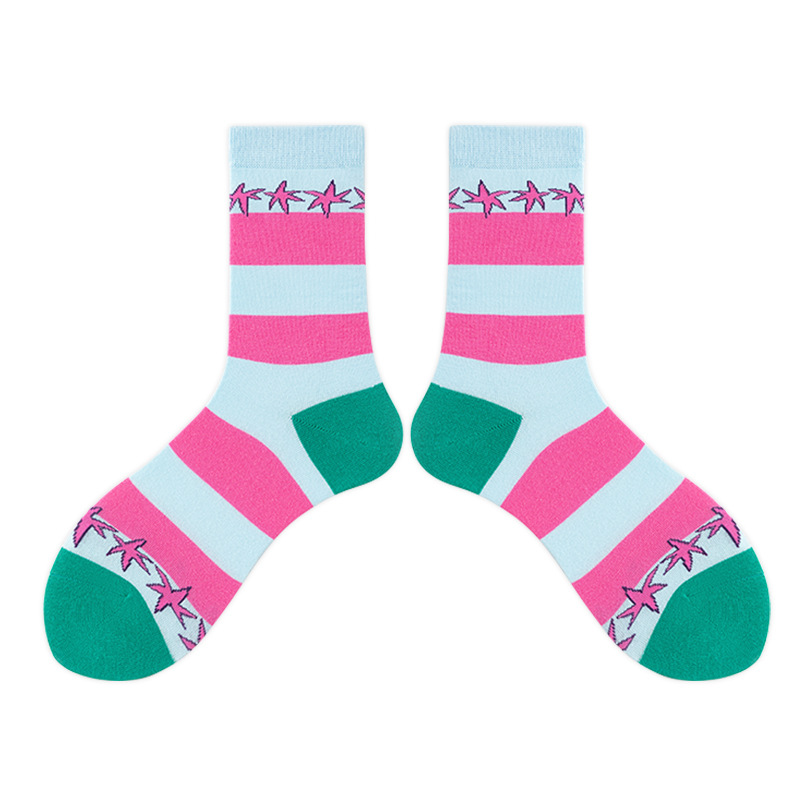 2024 여름 새로운 핑크 줄무늬 사랑 얇은 튜브 양말 여성 패션 달콤한 바람 트렌드 면화 양말