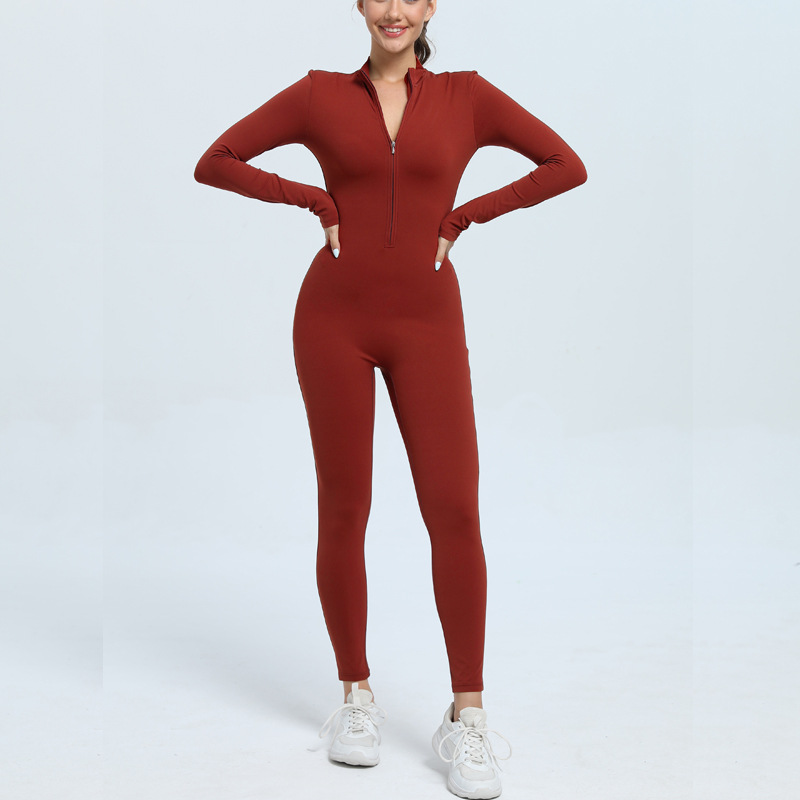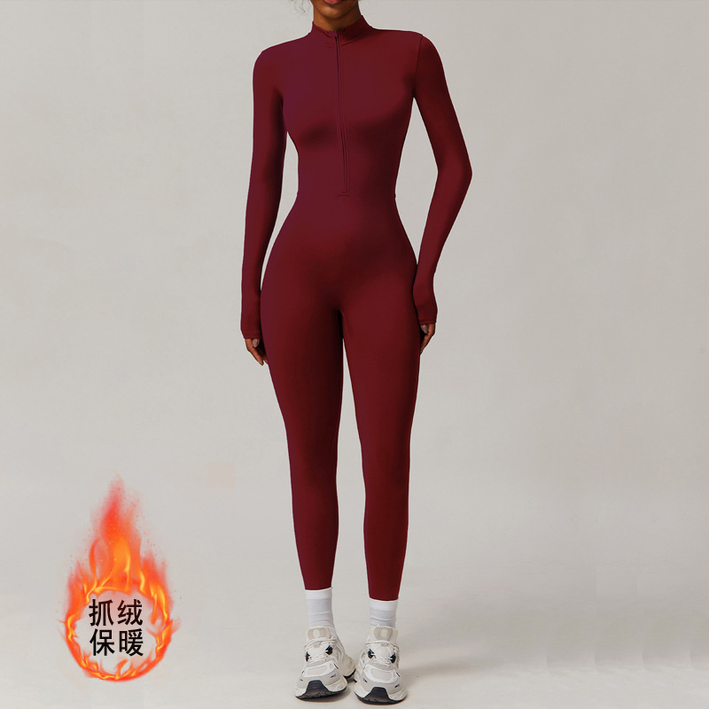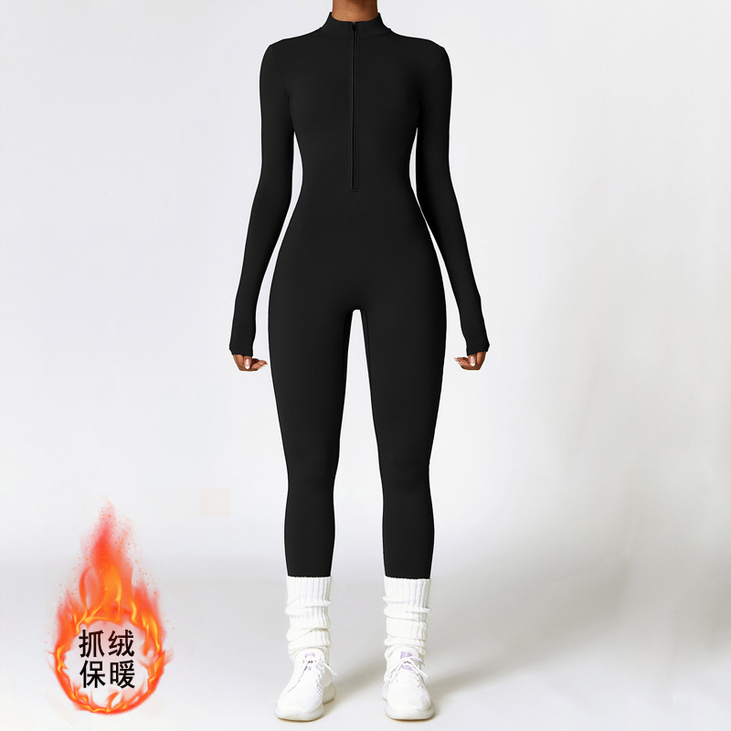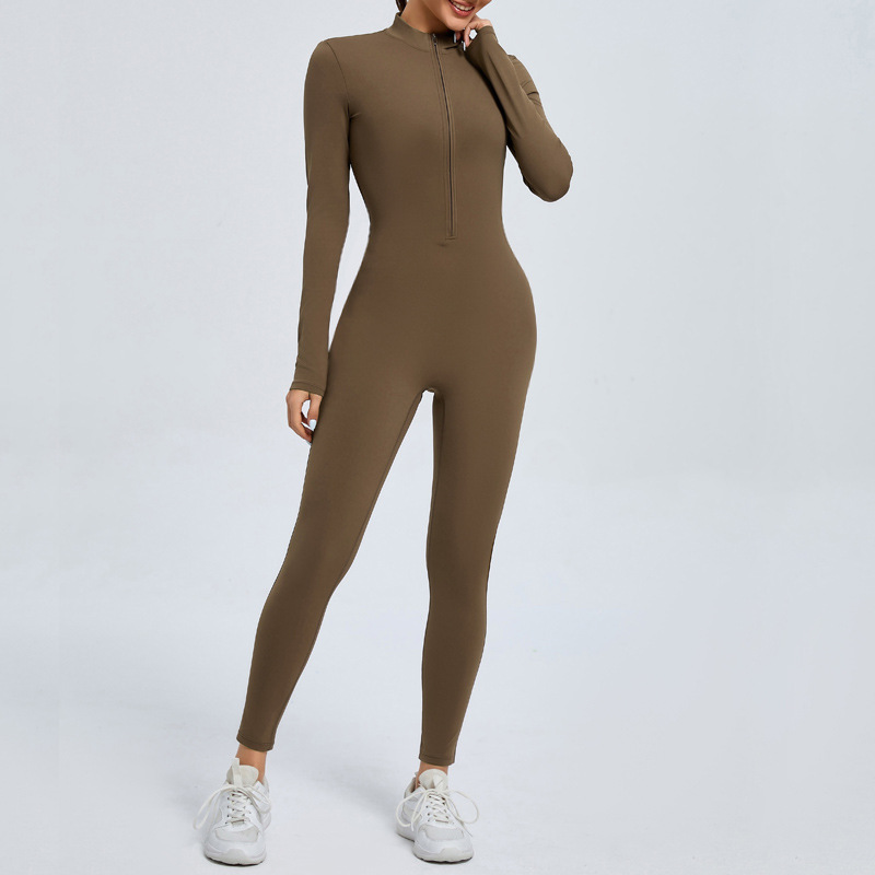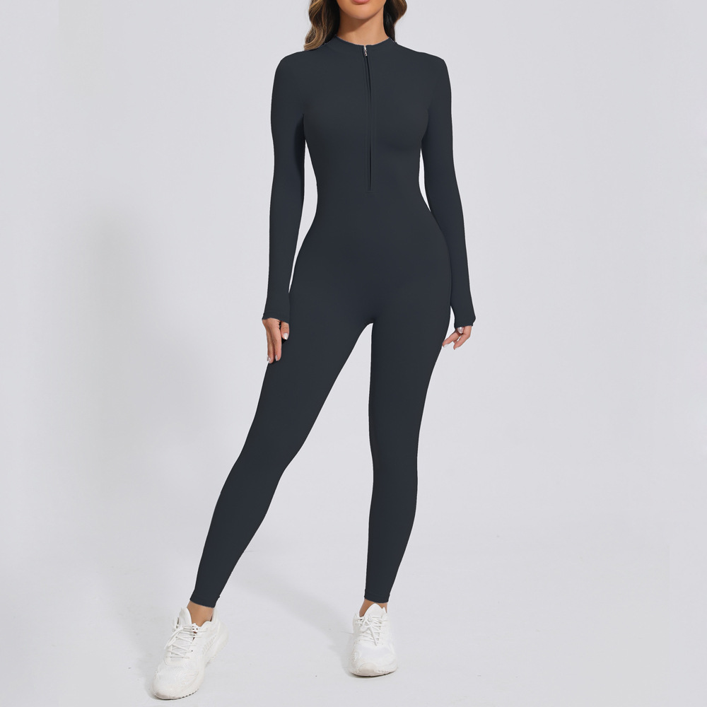 유럽과 미국의 긴팔 지퍼 요가 원피스 세트 여성 세트 고강도 피트니스 댄스 스포츠 훈련 원피스 스타킹스토어 가기