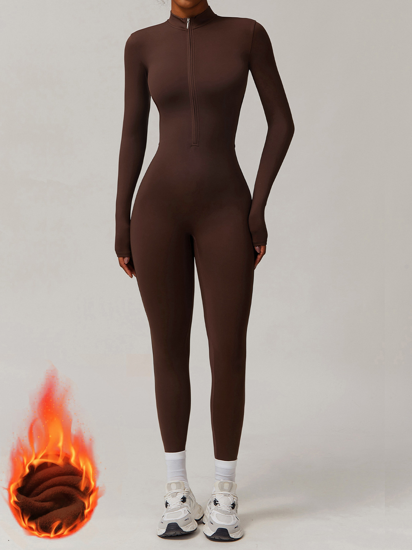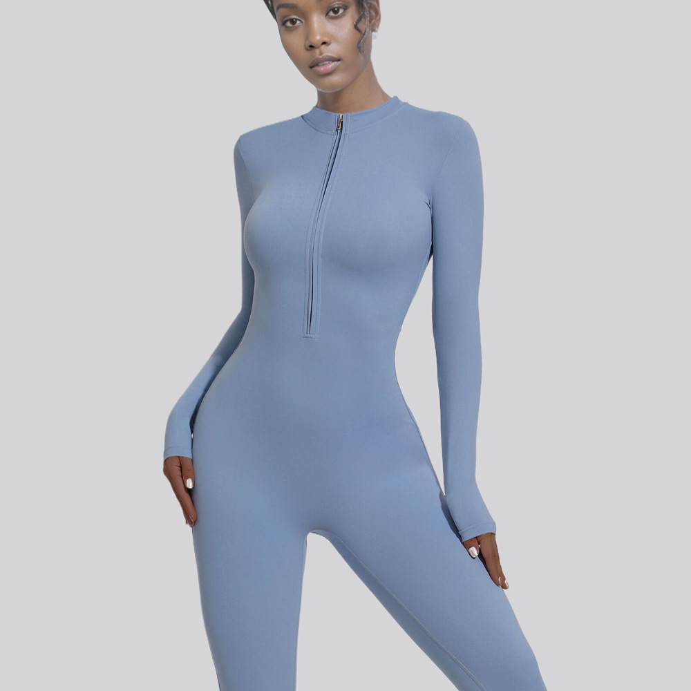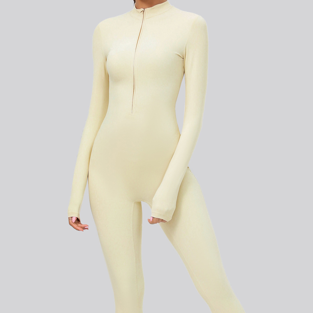 유럽과 미국의 긴팔 지퍼 요가 원피스 세트 여성 세트 고강도 피트니스 댄스 스포츠 훈련 원피스 스타킹스토어 가기