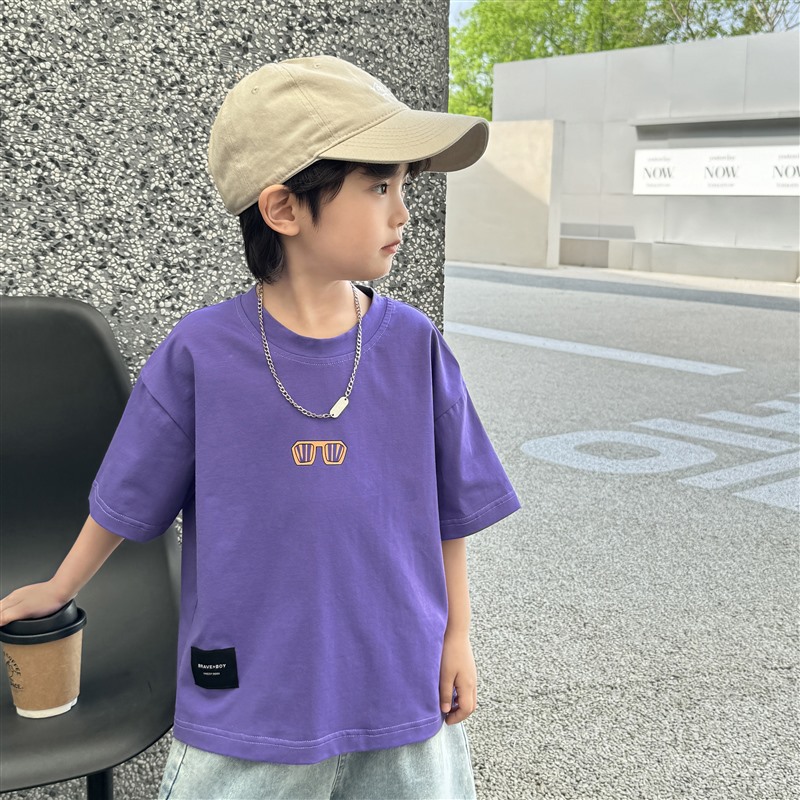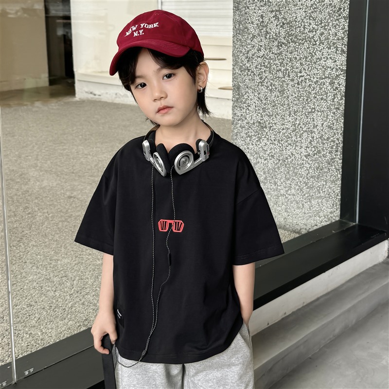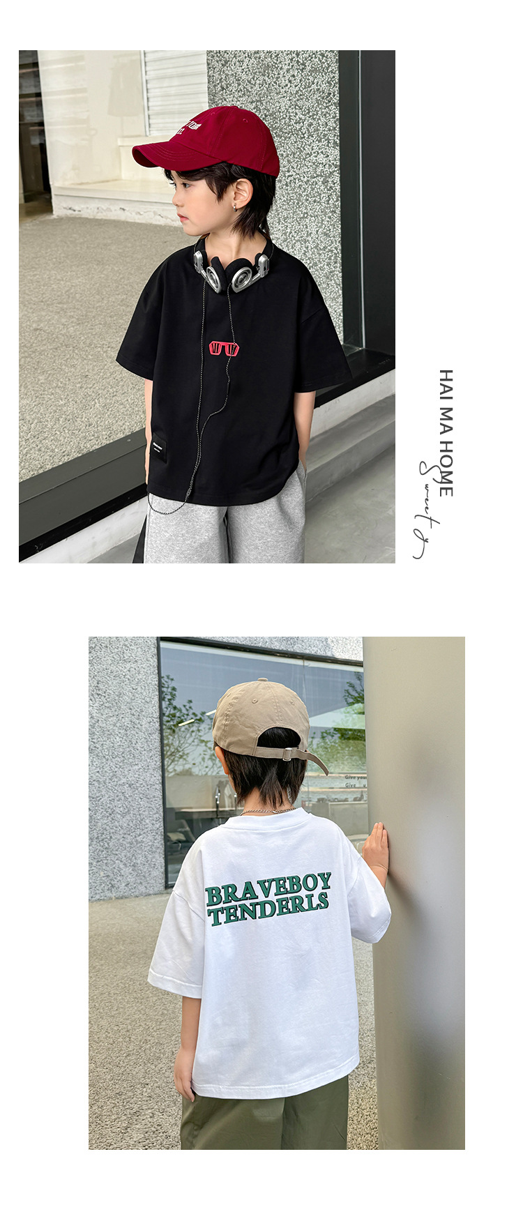Haima의 소년 순면 프린트 반팔 티셔츠 옷 2025 여름 새로운 한국 스타일 아동 반팔 여름 의류 트렌드스토어 가기