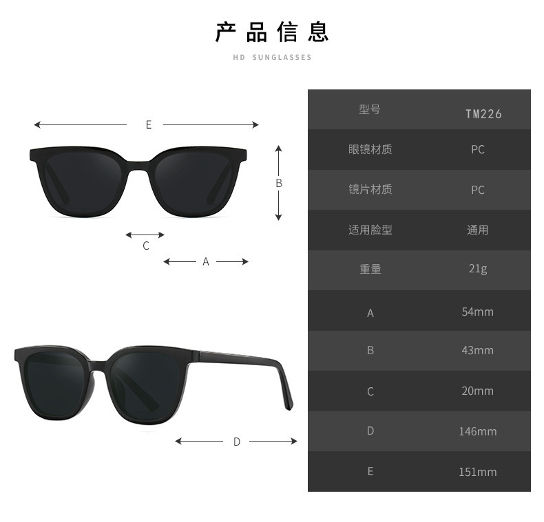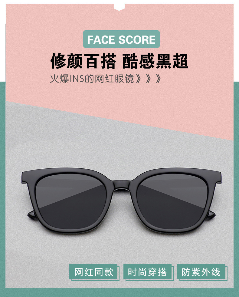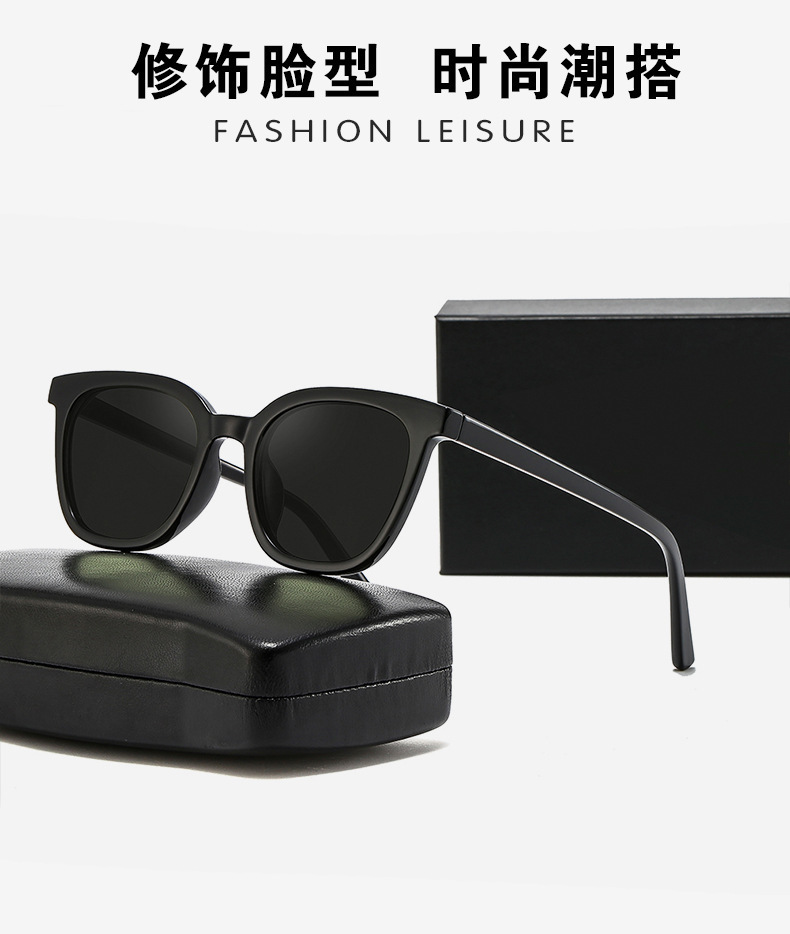 Gm 블랙 프레임 차 선글라스 여성용 안티 UV 하이 레벨 2024 남성을위한 새로운 유행 큰 얼굴 슬리밍 선글라스