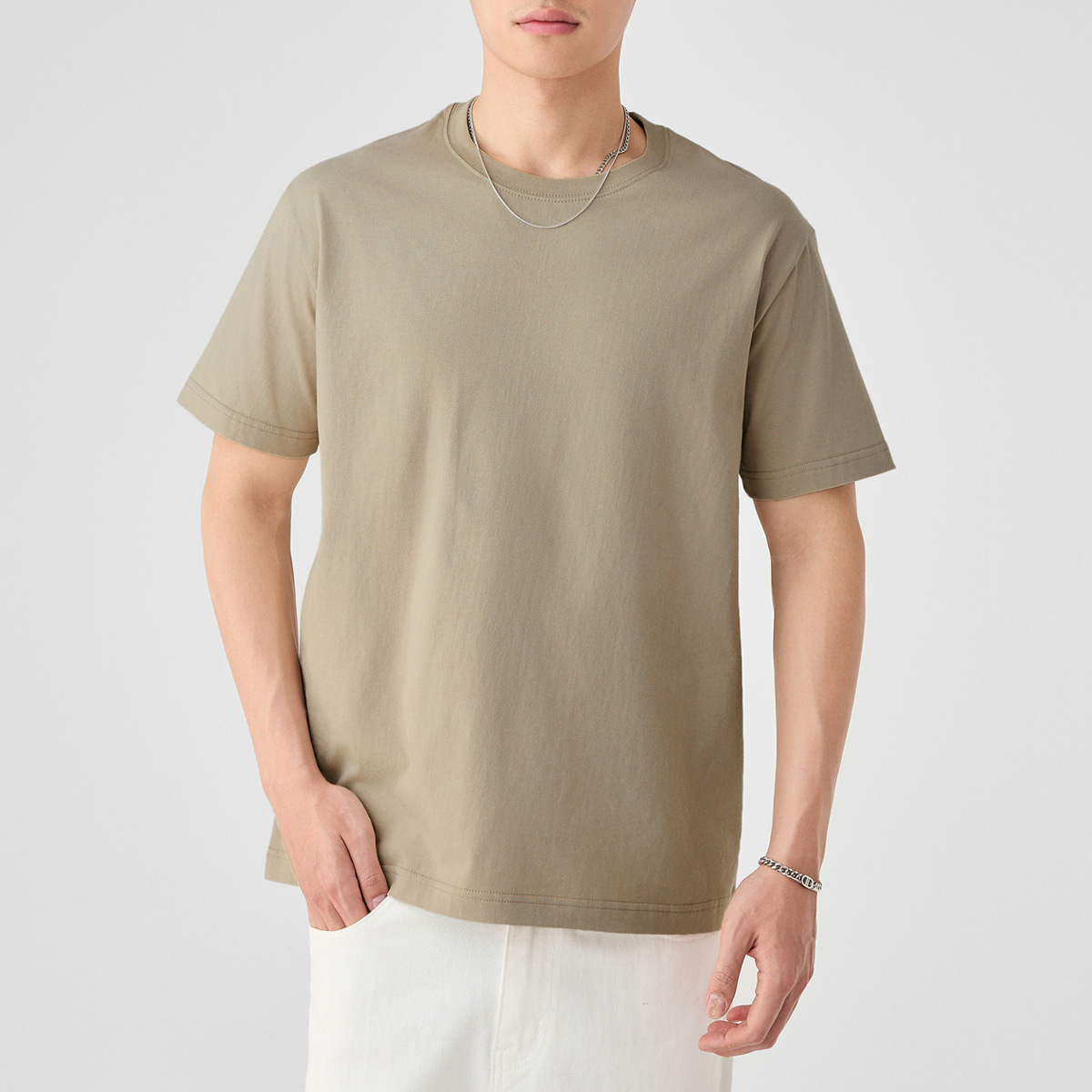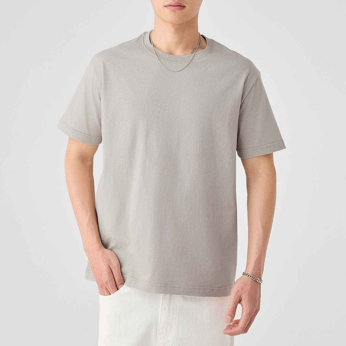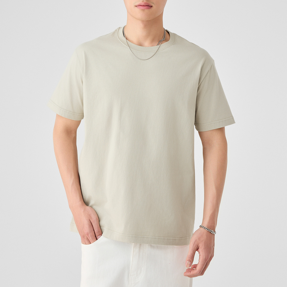 Mimaike 230g 빗질면 단색 짧은 소매 티셔츠 남성용 2025 년 여름 기본 남성 크루 넥 티셔츠 71141.스토어 가기