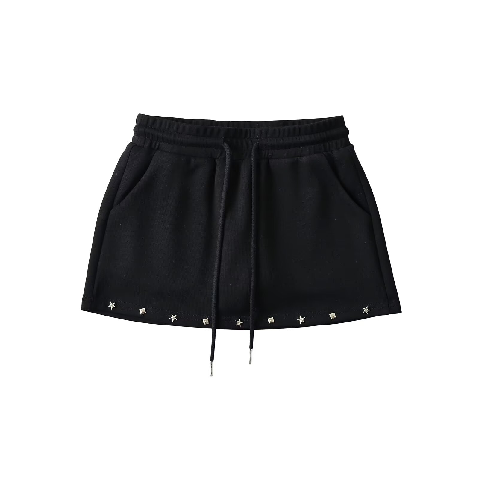 유럽과 미국 스타일의 뜨거운 소녀 여름 스포츠 캐주얼 솔리드 컬러 스커트 레이스 업 올 매치 쇼트 스커트 리벳스토어 가기